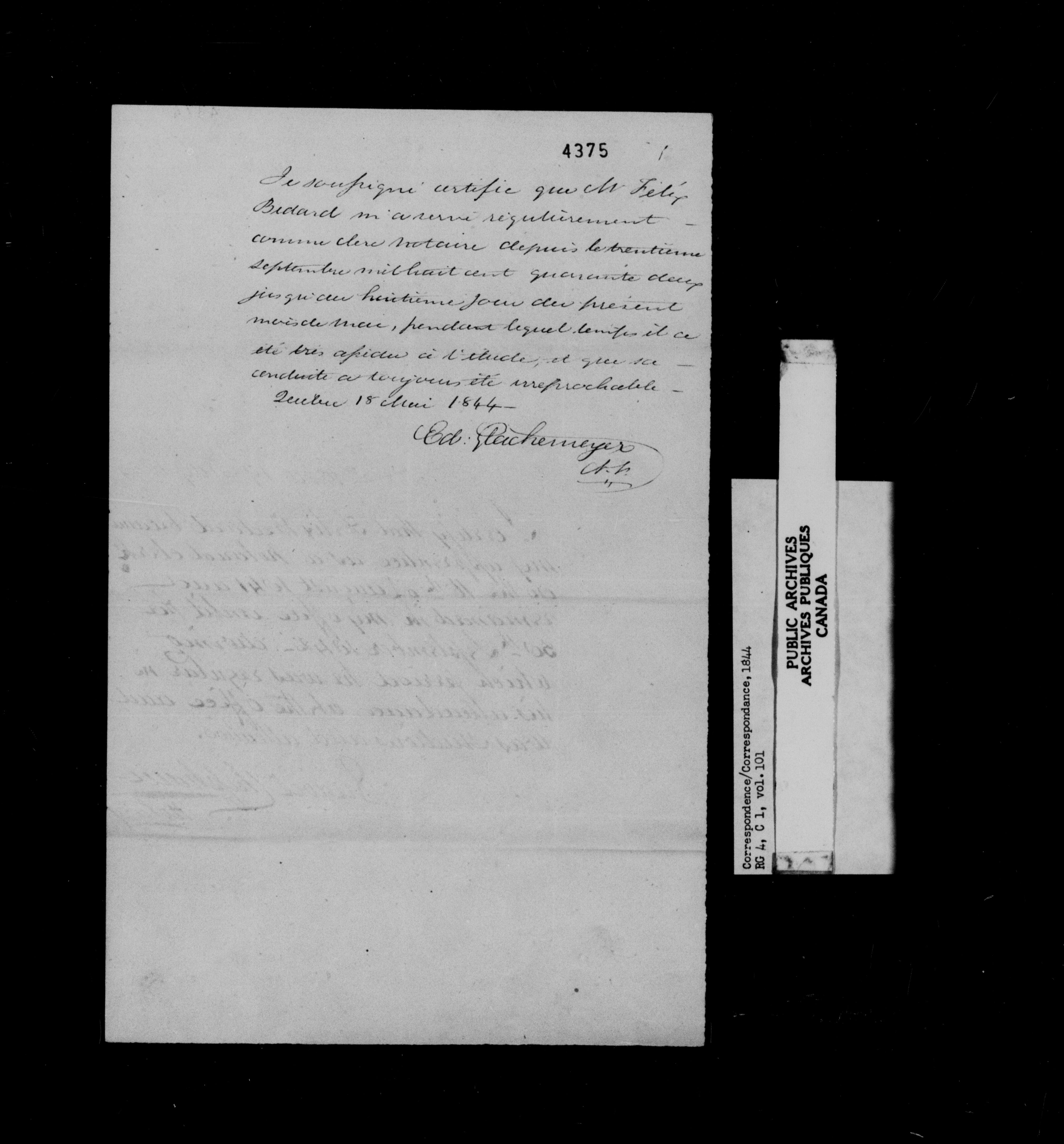 Canada East : Provincial Secretary numbered correspondence files, 1839-1867 : C-10974