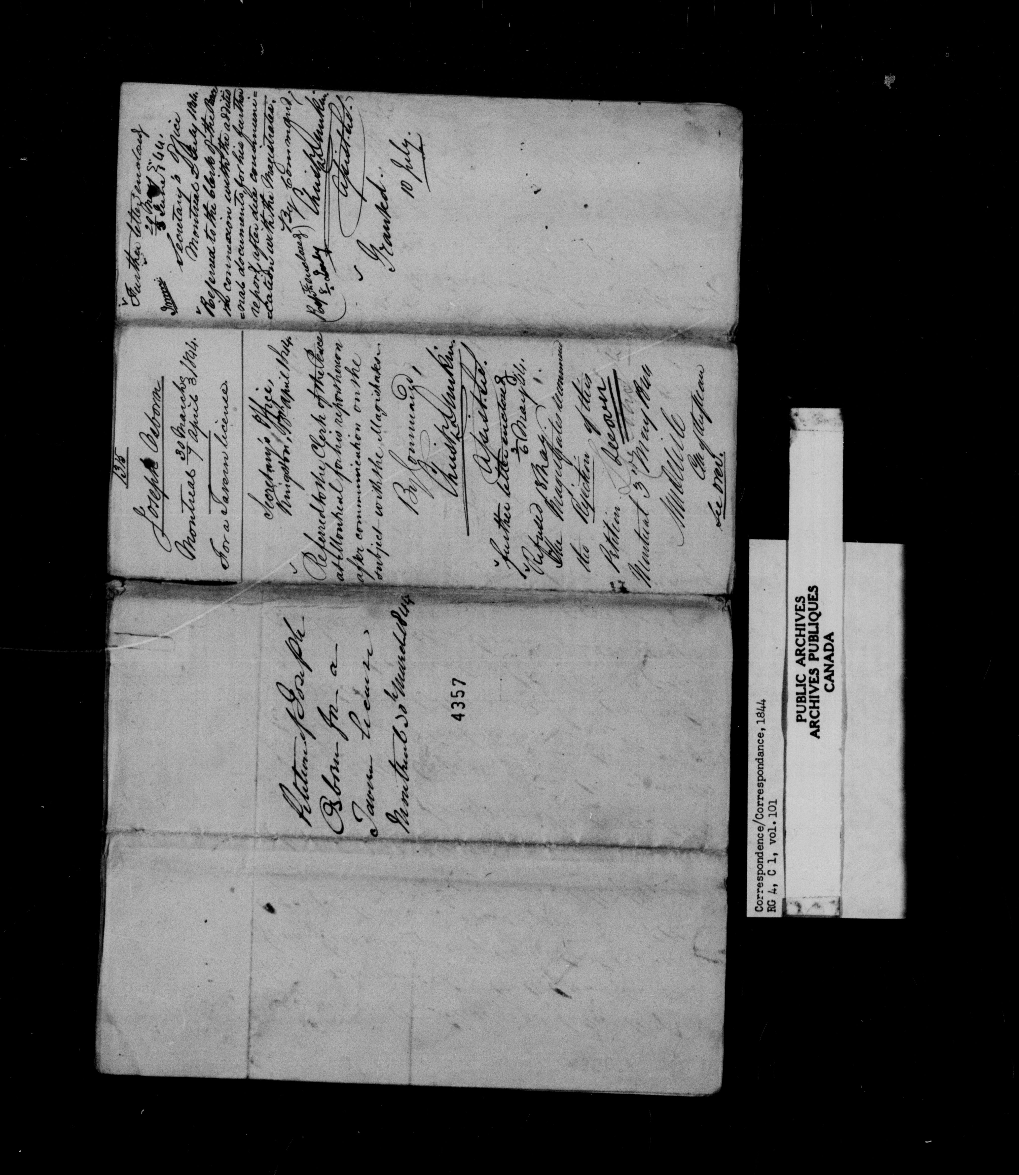 Provincial Secretary, Canada East : Numbered Correspondence Files, 1839-1867 - 10974