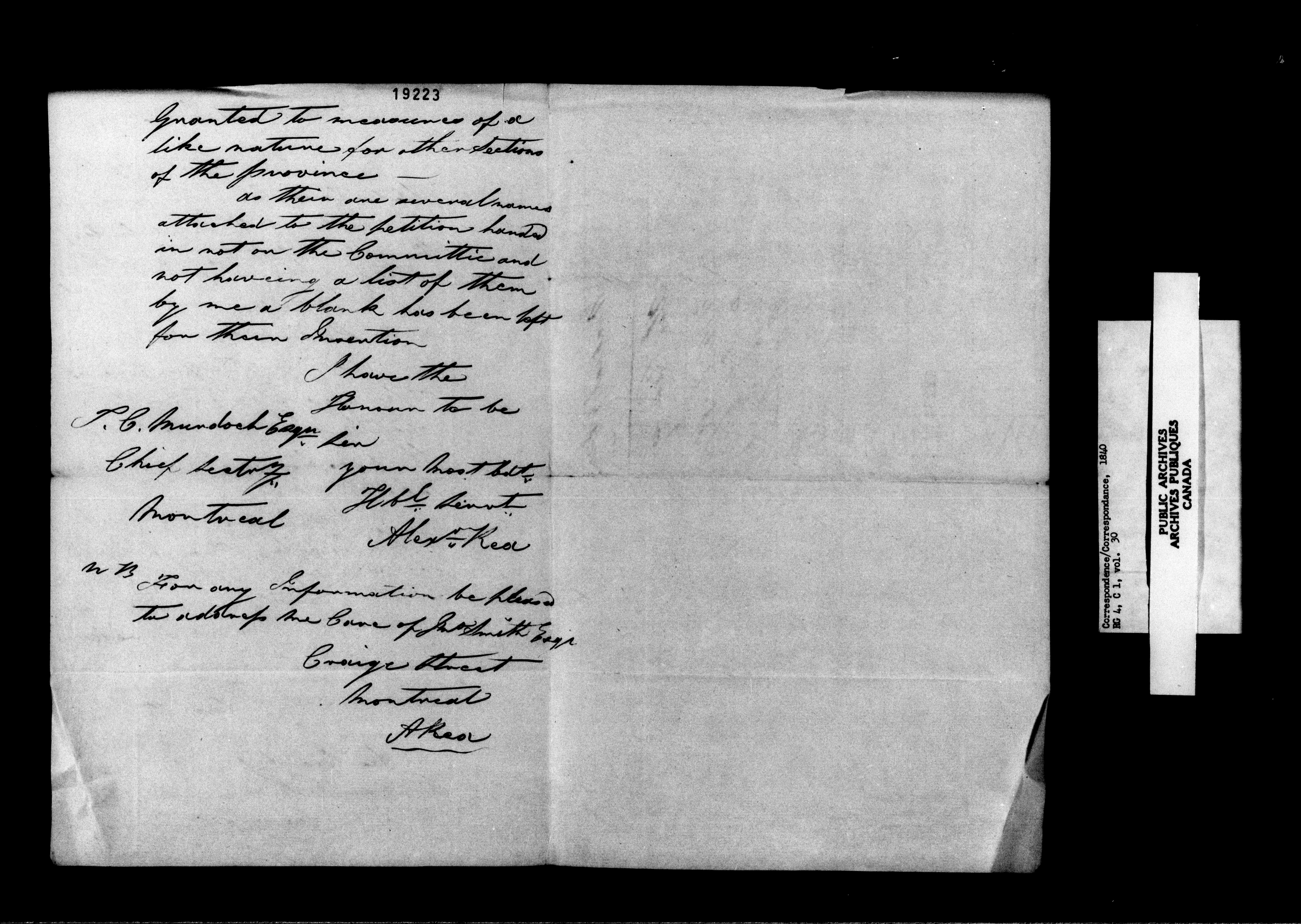 Provincial Secretary, Canada East : Numbered Correspondence Files, 1839-1867 - 10976
