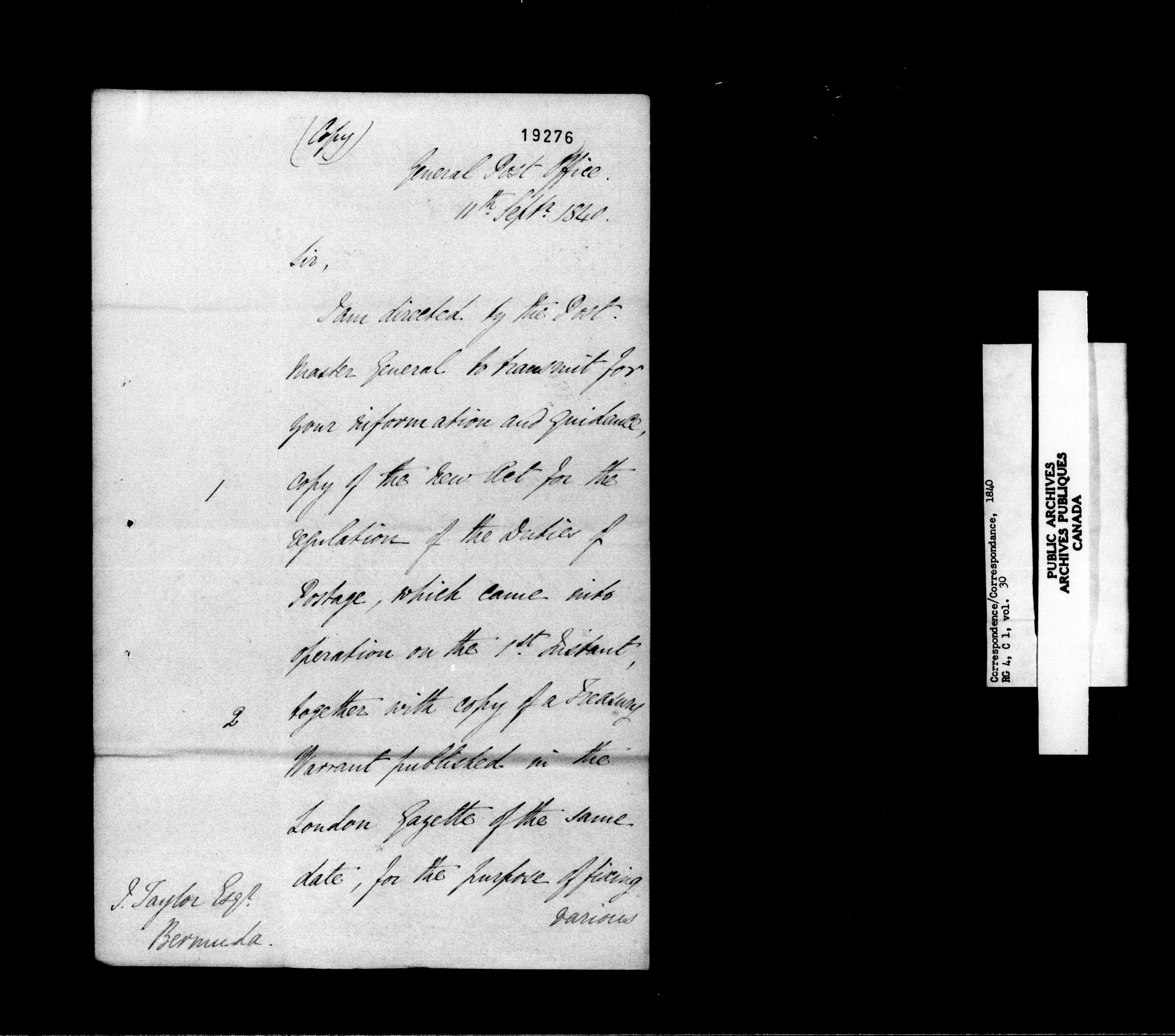 Provincial Secretary, Canada East : Numbered Correspondence Files, 1839-1867 - 10976