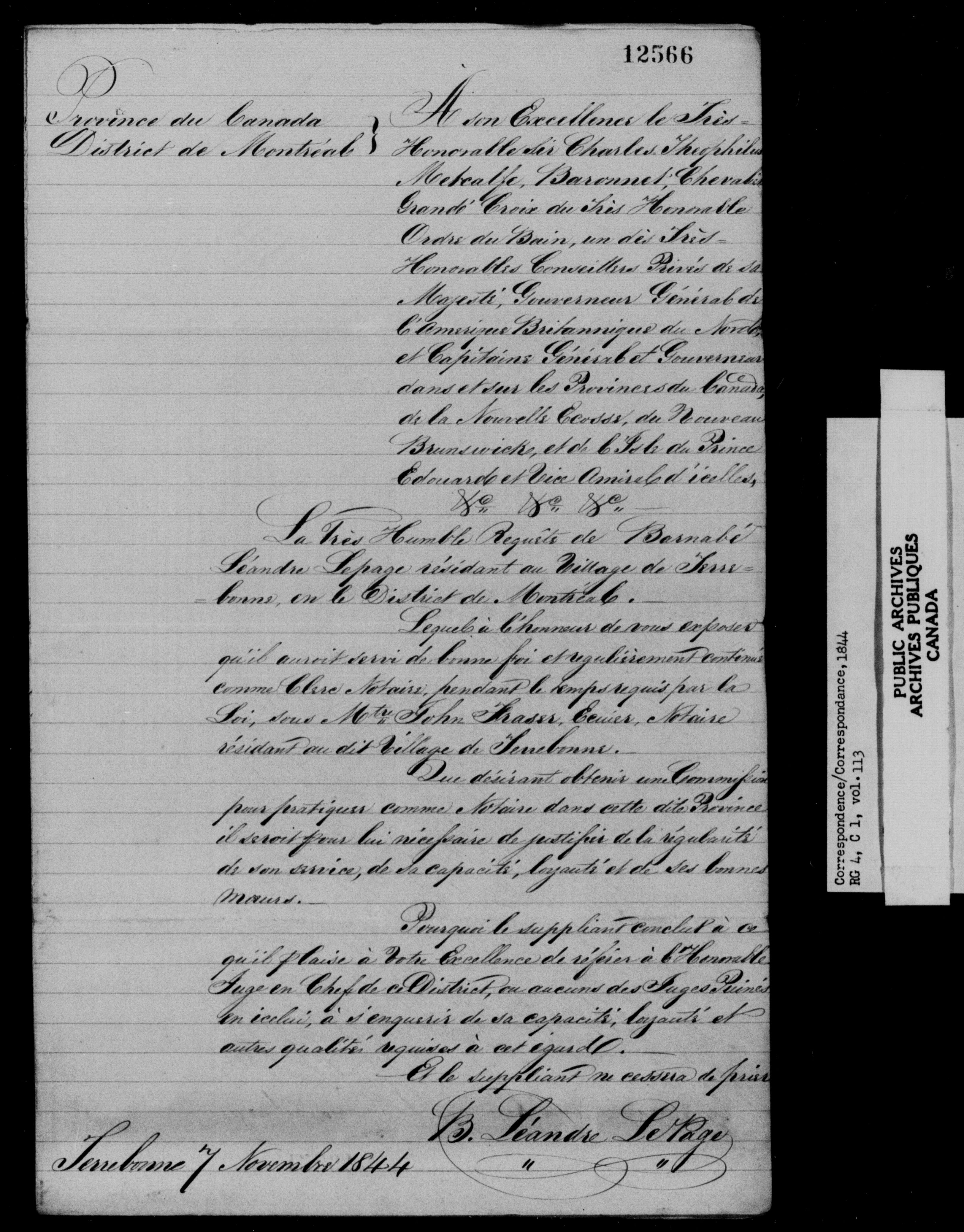 Canada East : Provincial Secretary numbered correspondence files, 1839-1867 : C-10979