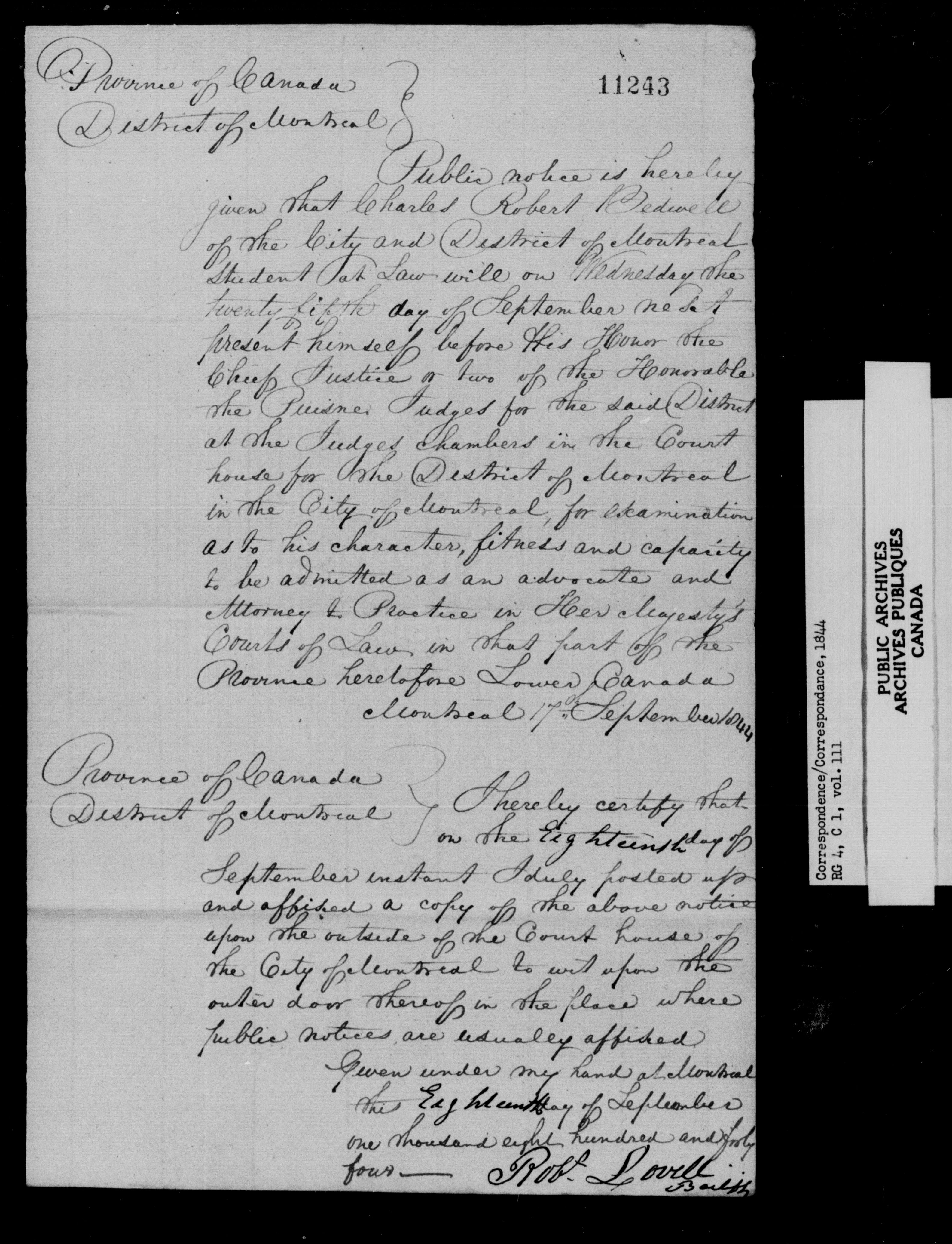 Provincial Secretary, Canada East : Numbered Correspondence Files, 1839-1867 - 10979