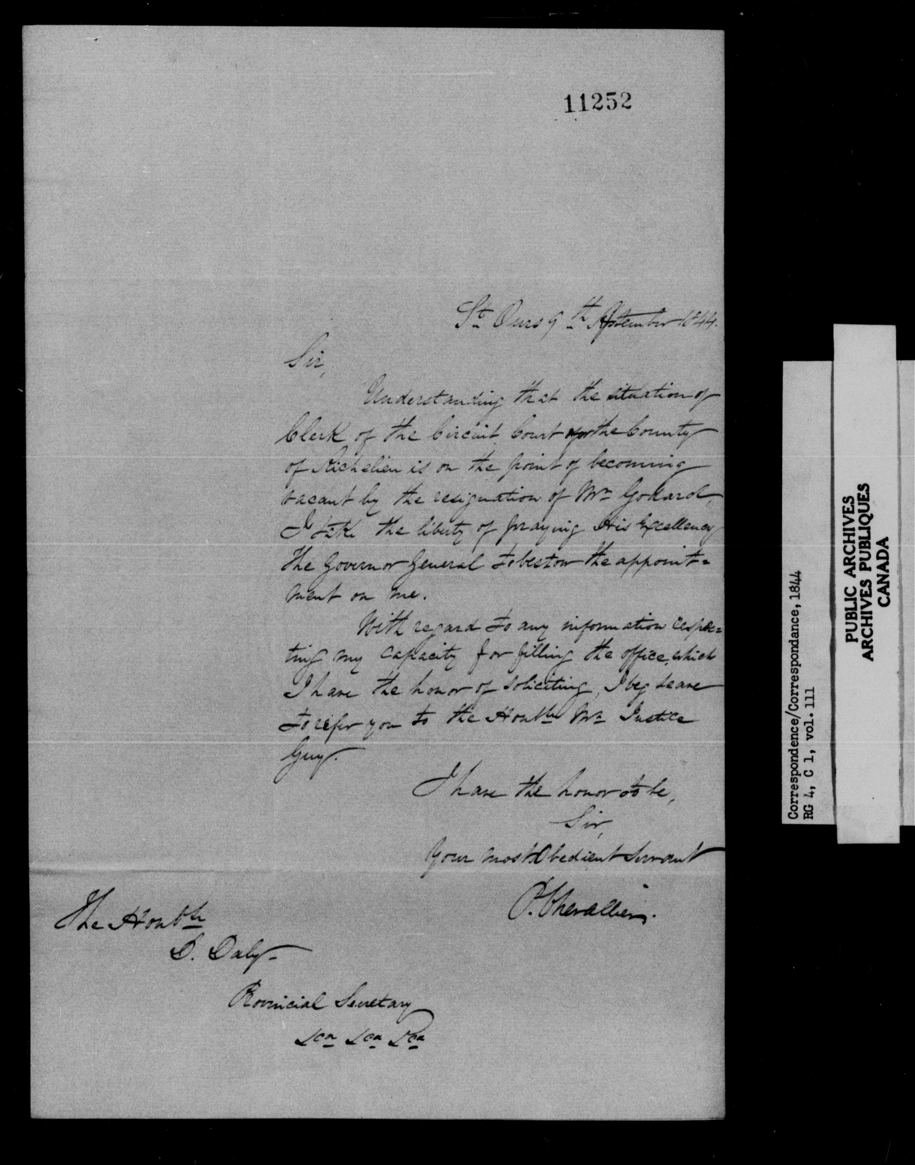Provincial Secretary, Canada East : Numbered Correspondence Files, 1839-1867 - 10979
