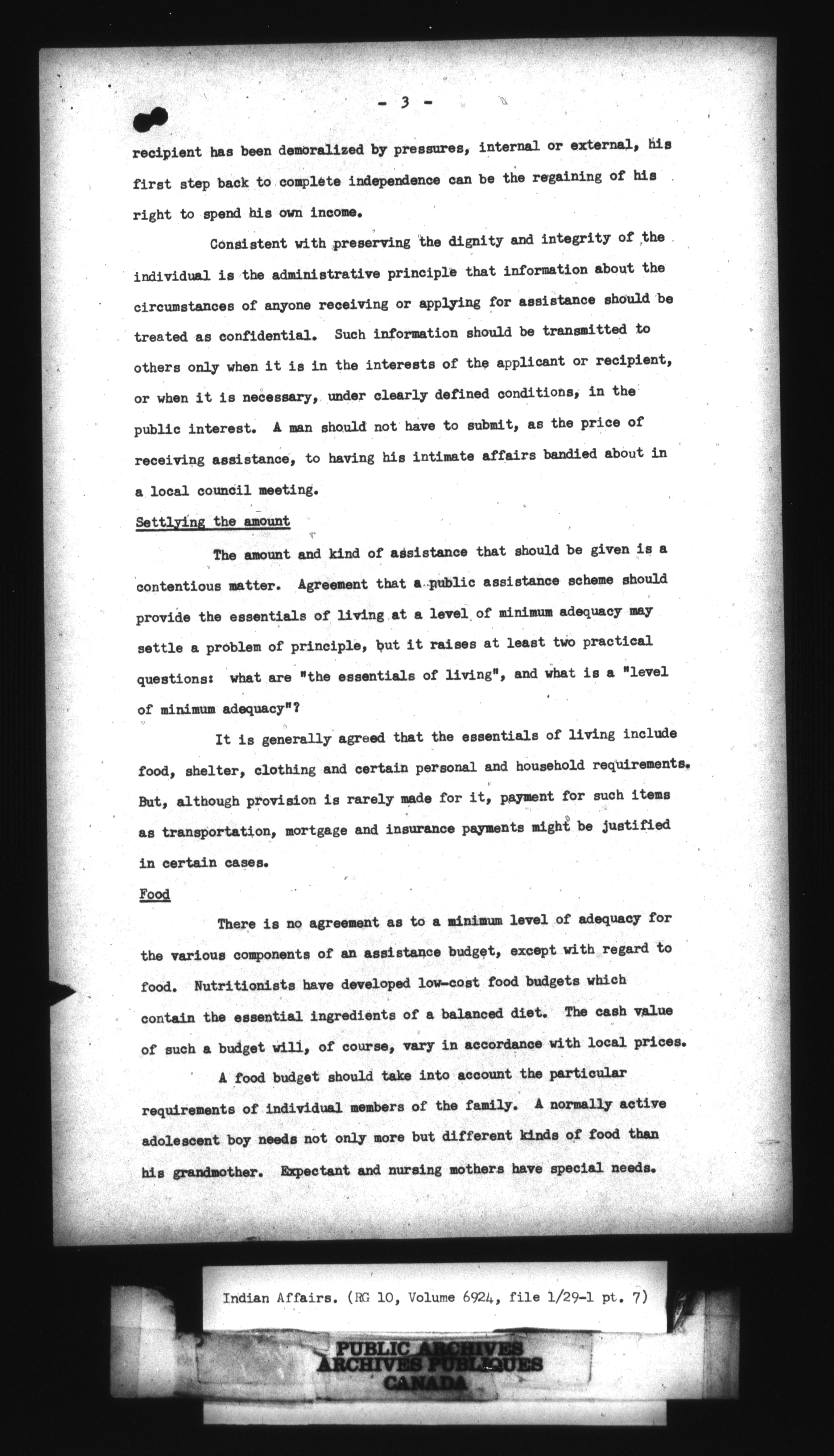 Department of Indian Affairs : Headquarters Files - 10982