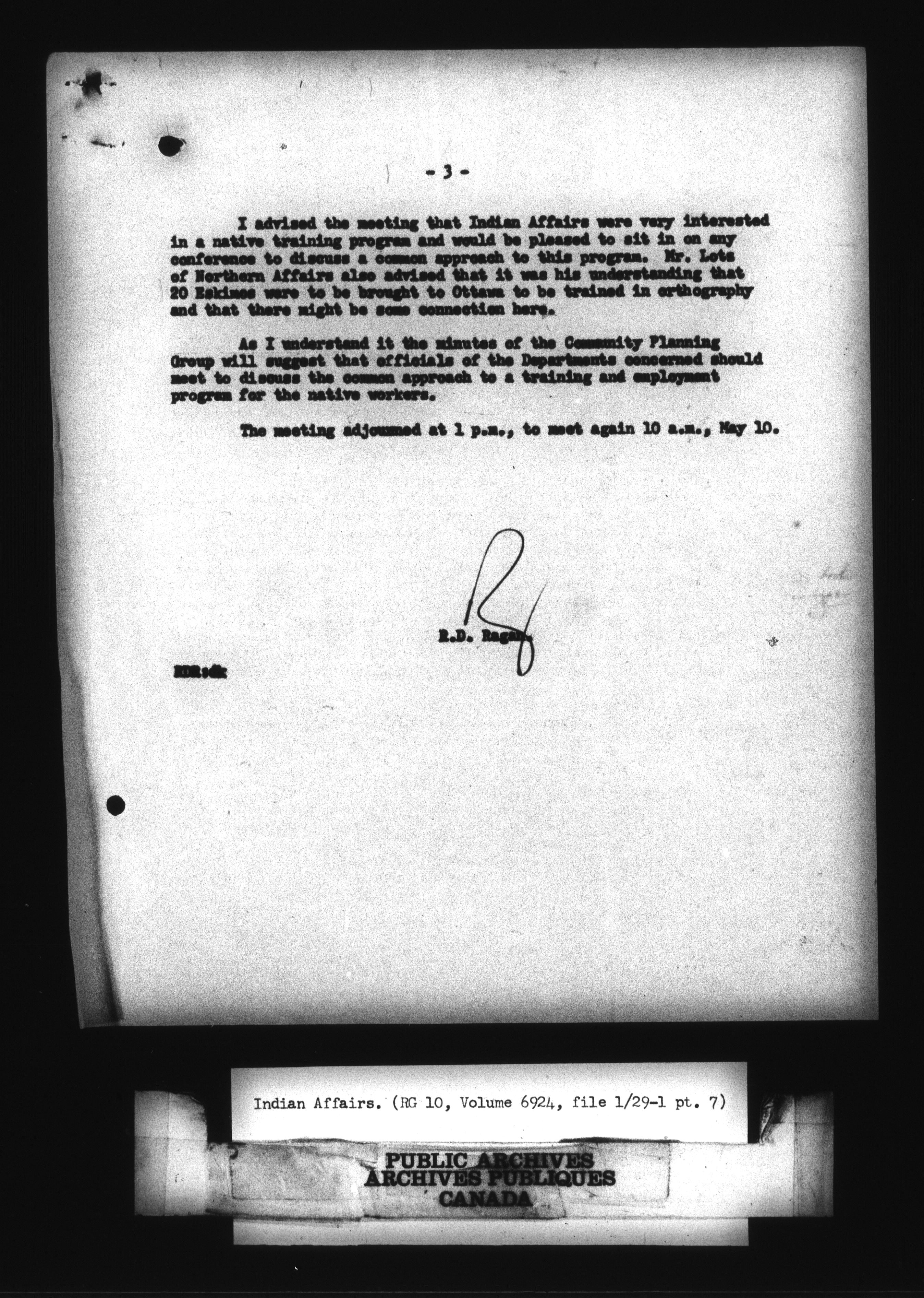 Department of Indian Affairs : Headquarters Files - 10983