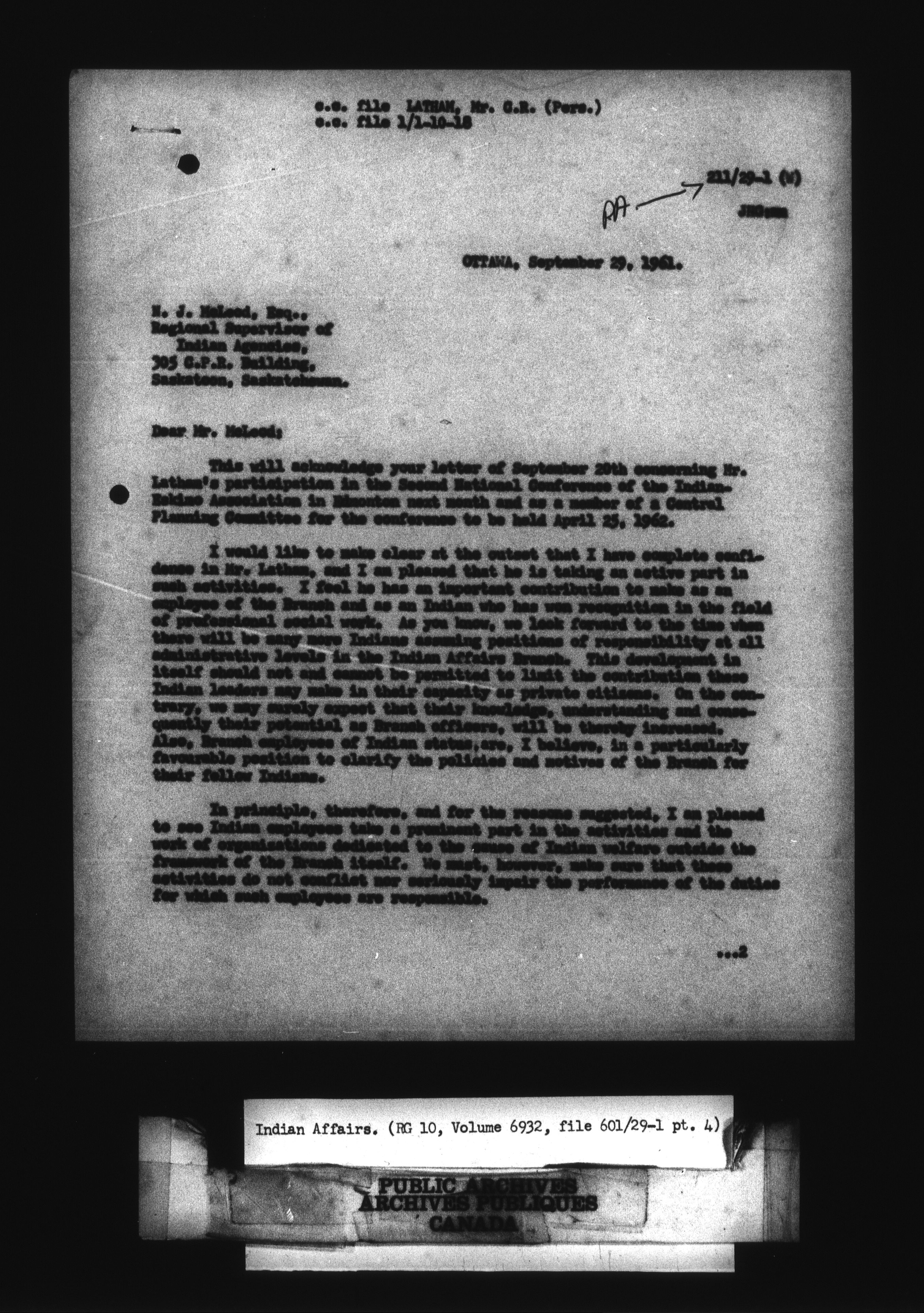 Department of Indian Affairs : Headquarters Files - 10987