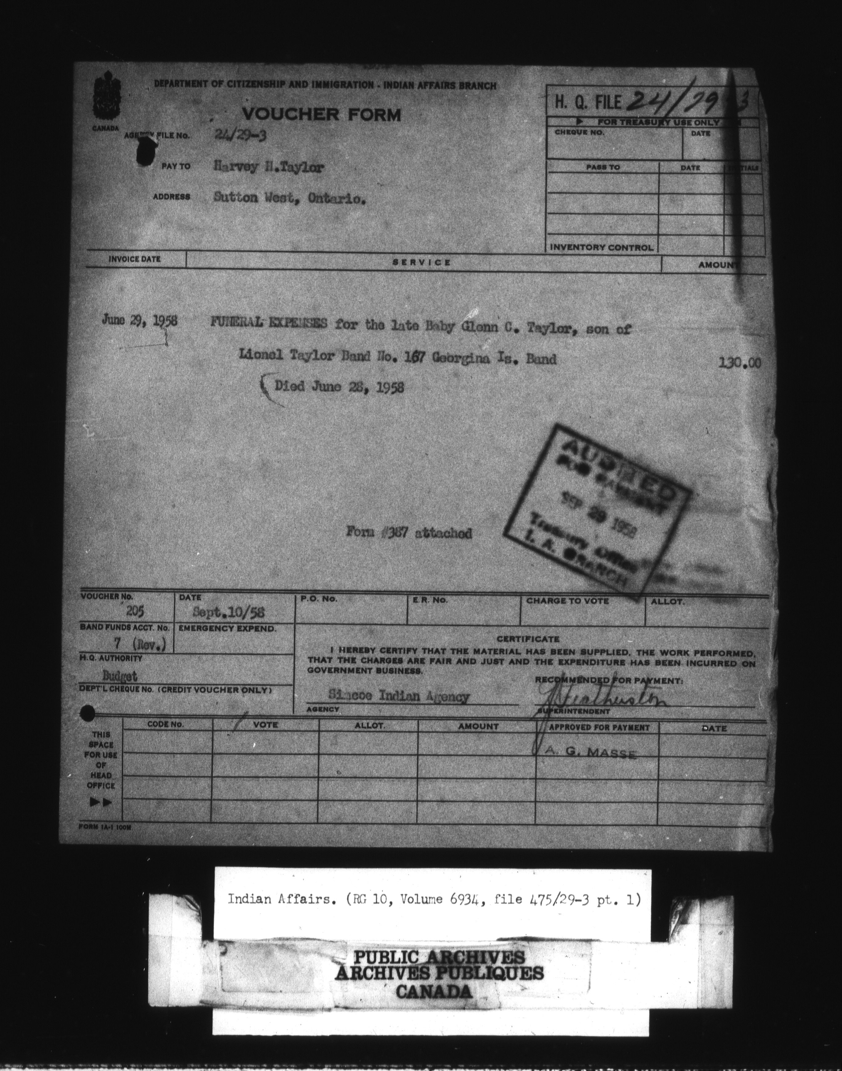 Department of Indian Affairs : Headquarters Files - 10988