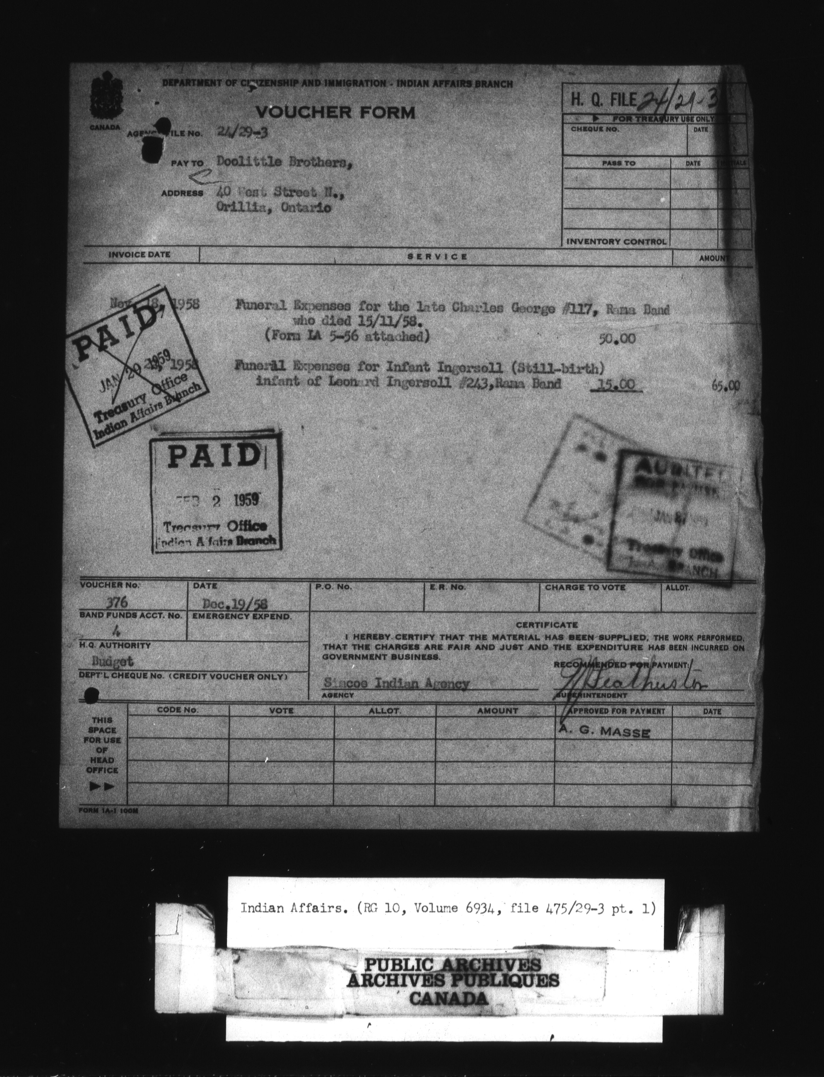 Department of Indian Affairs : Headquarters Files - 10988