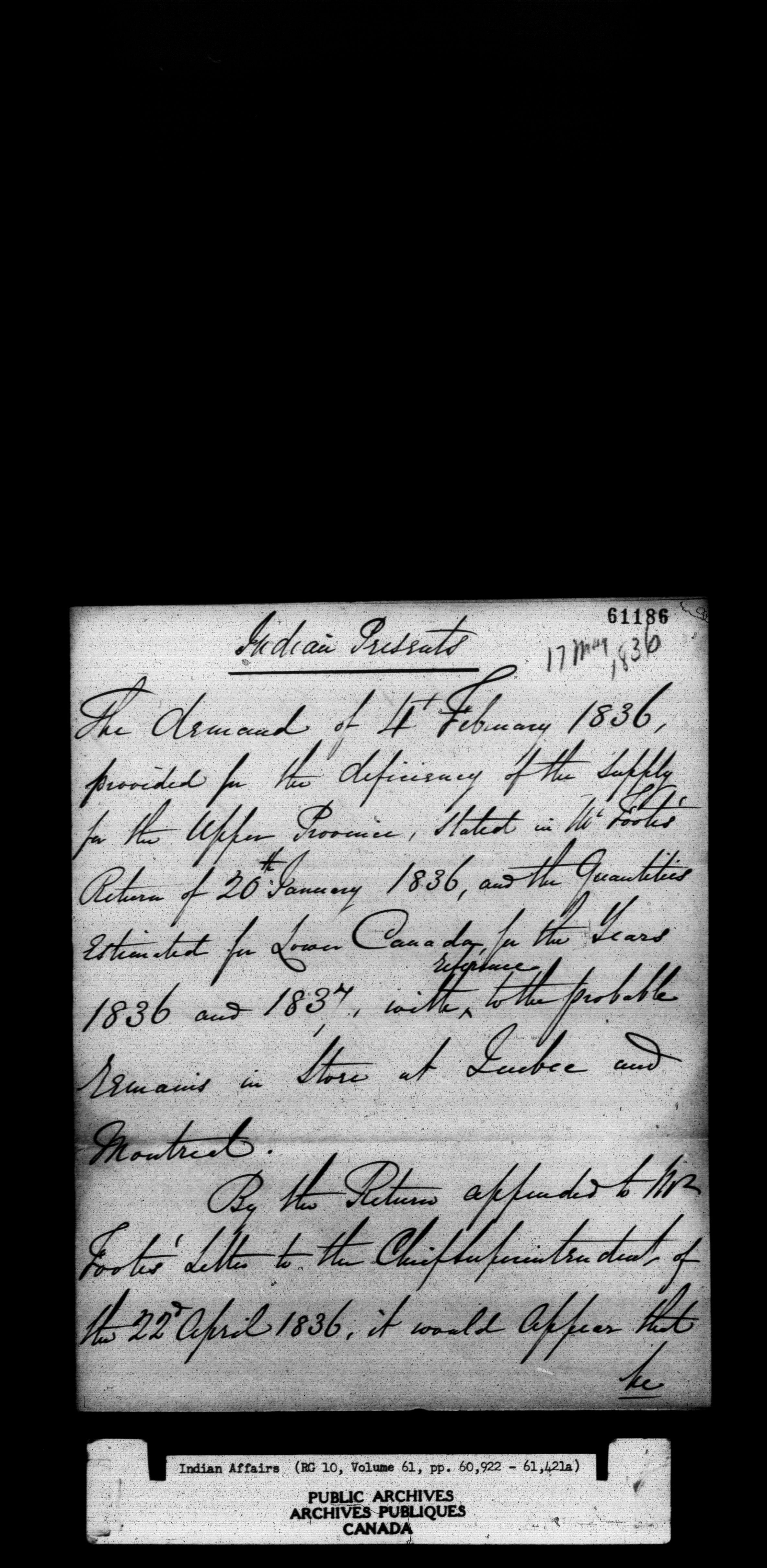 Department of Indian Affairs: Office of the Chief Superintendent in Upper Canada, 1831-1850 - 11020