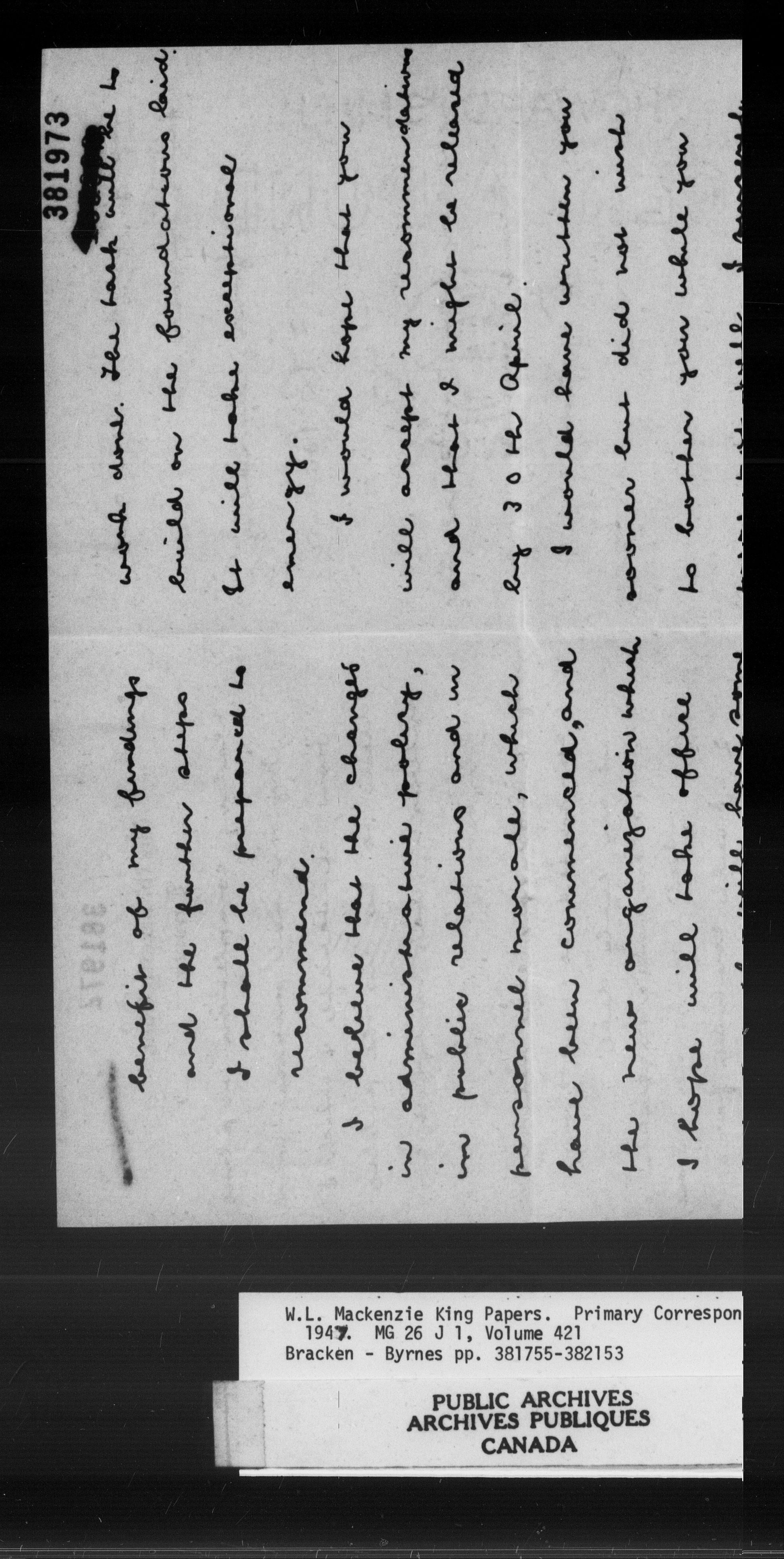 William Lyon Mackenzie King : Primary series correspondence (J1) - 11035