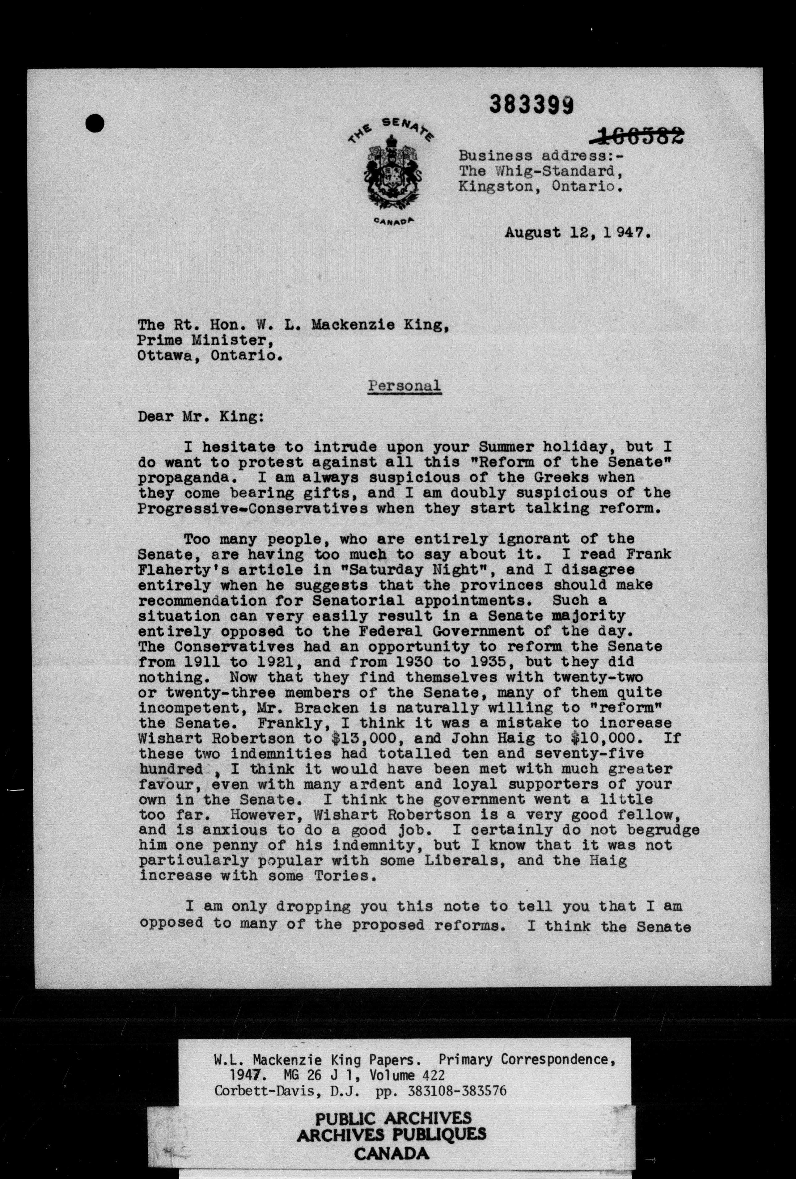 William Lyon Mackenzie King : Primary series correspondence (J1) - 11036