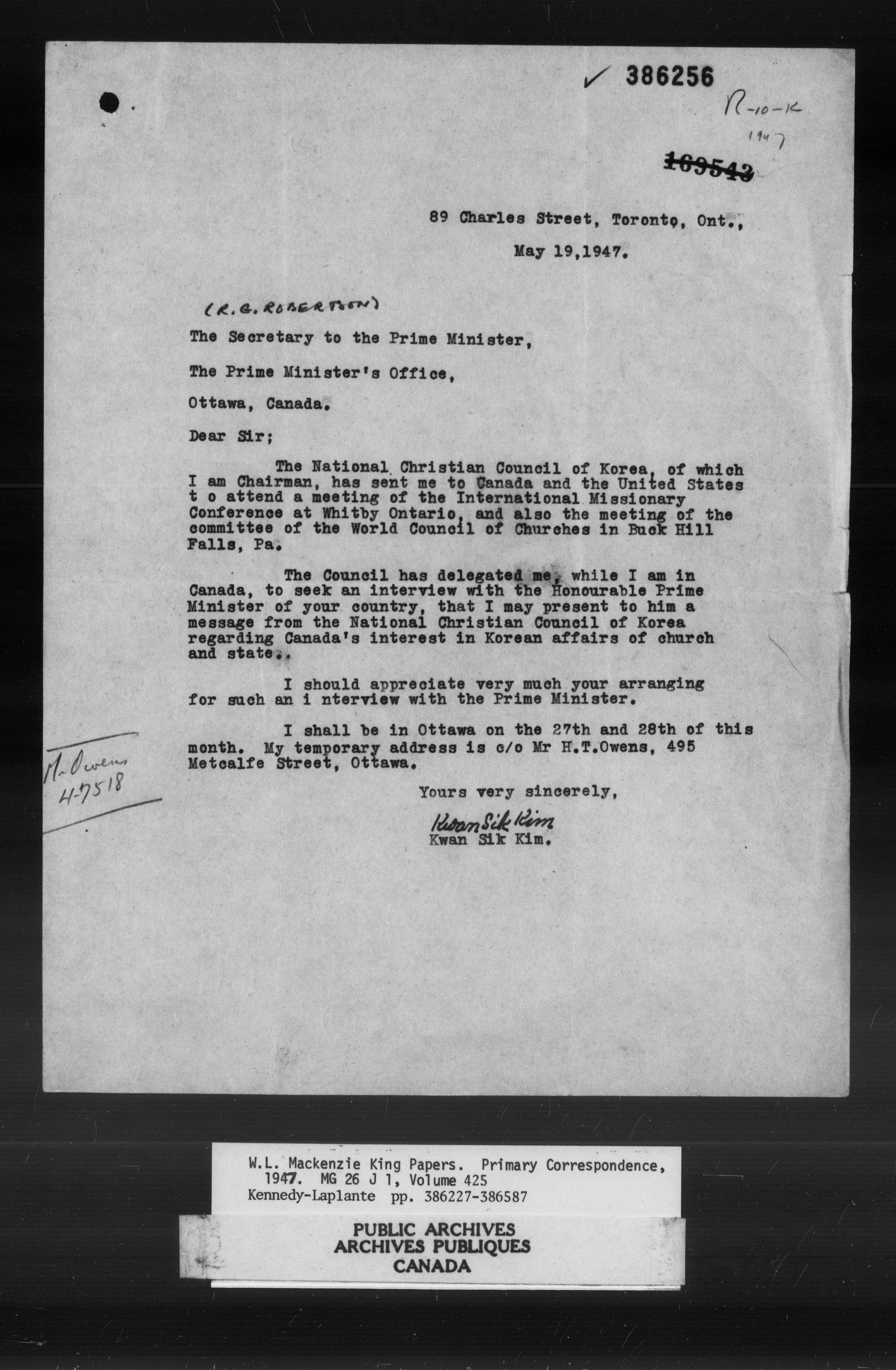 William Lyon Mackenzie King : Primary series correspondence (J1) - 11038