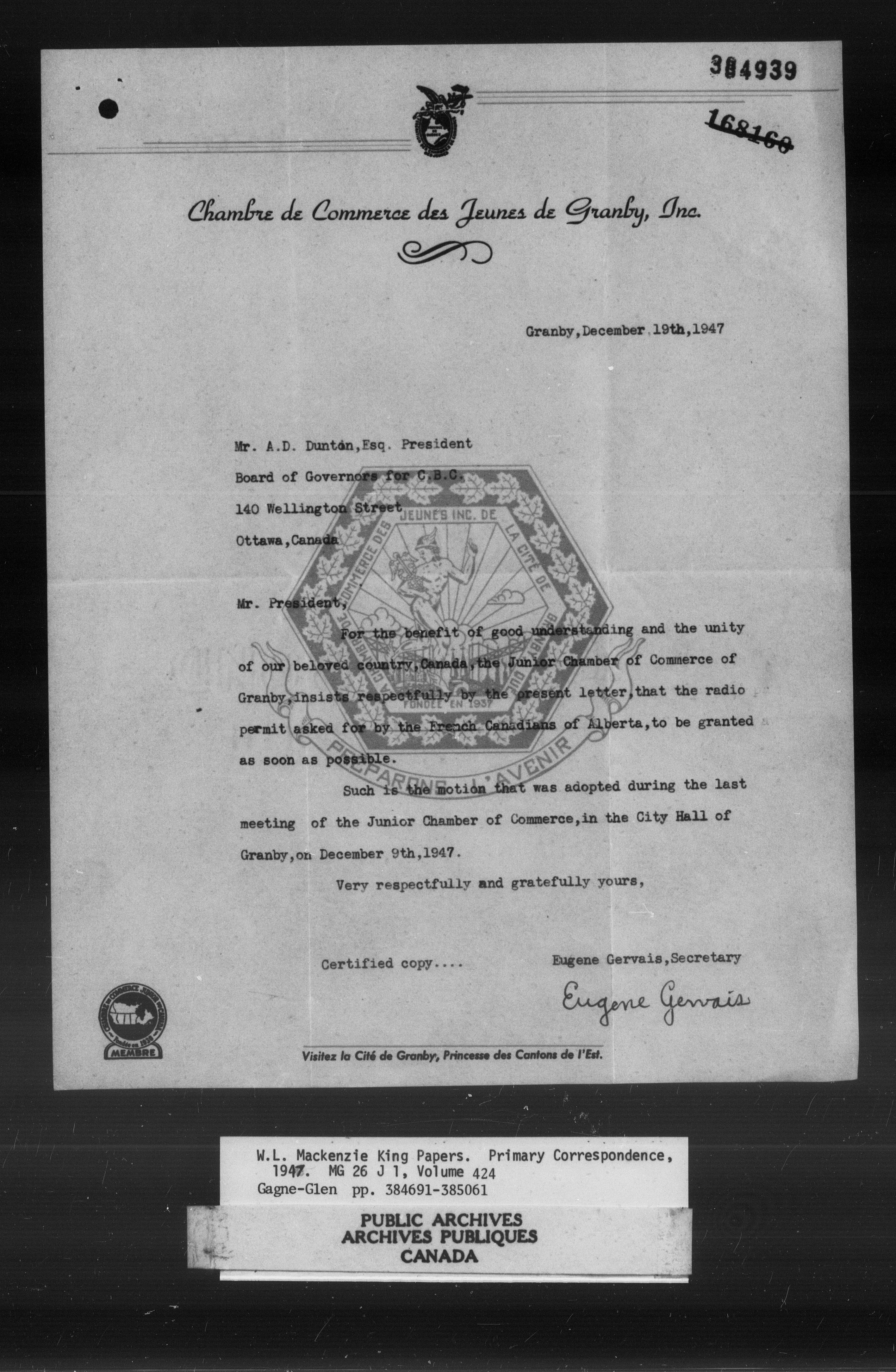 William Lyon Mackenzie King : Primary series correspondence (J1) - 11038