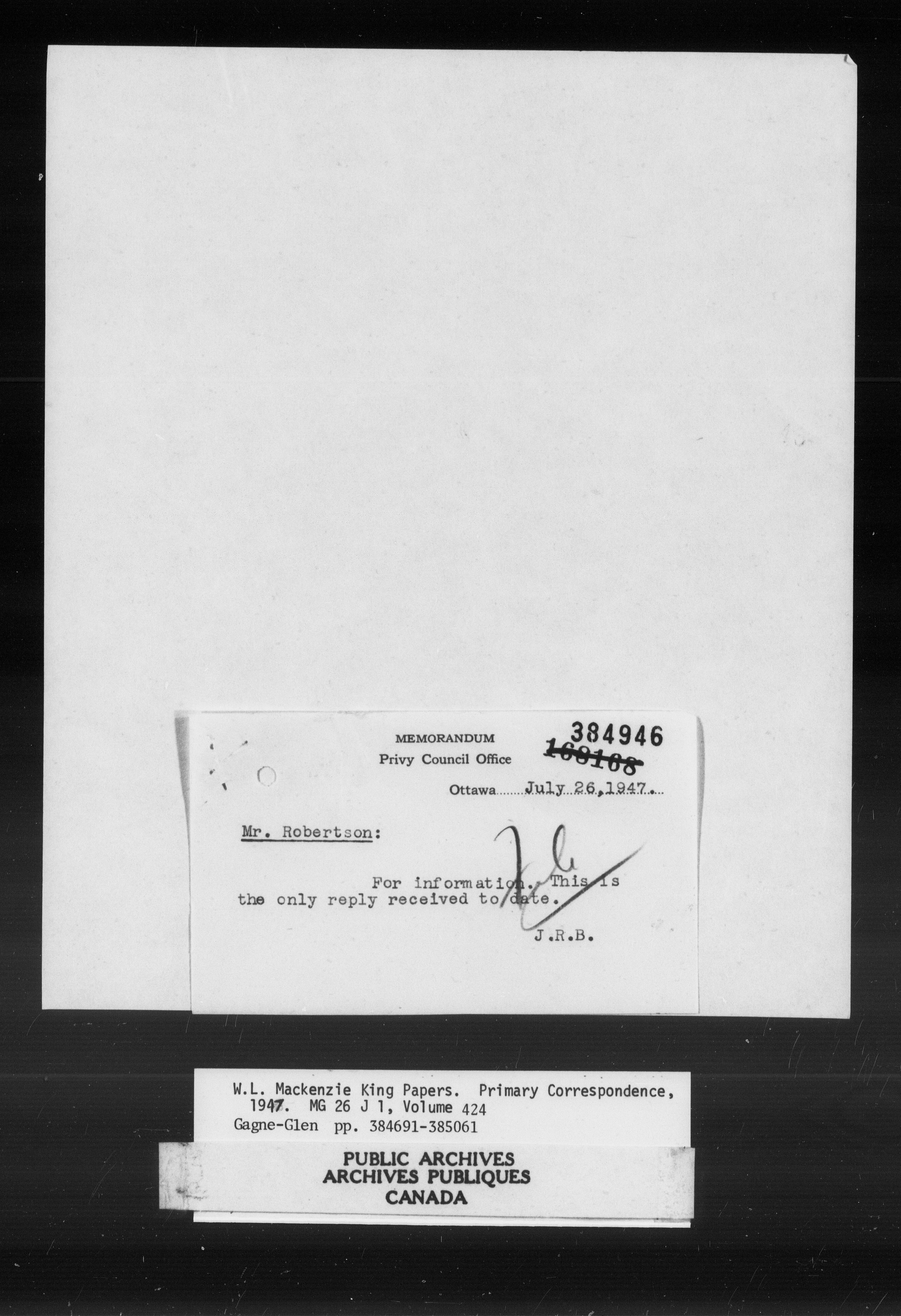 William Lyon Mackenzie King : Primary series correspondence (J1) - 11038