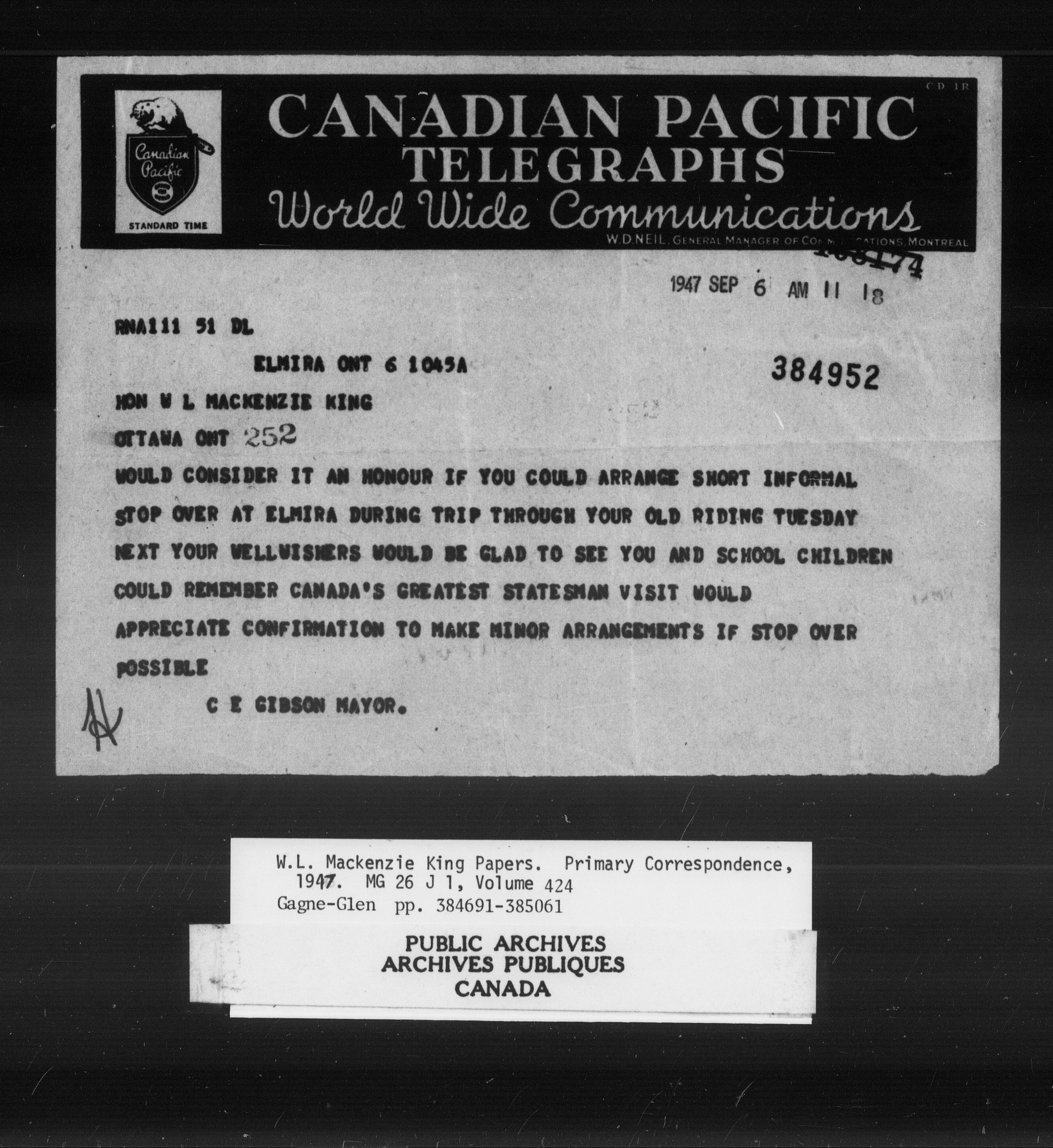William Lyon Mackenzie King : Primary series correspondence (J1) - 11038