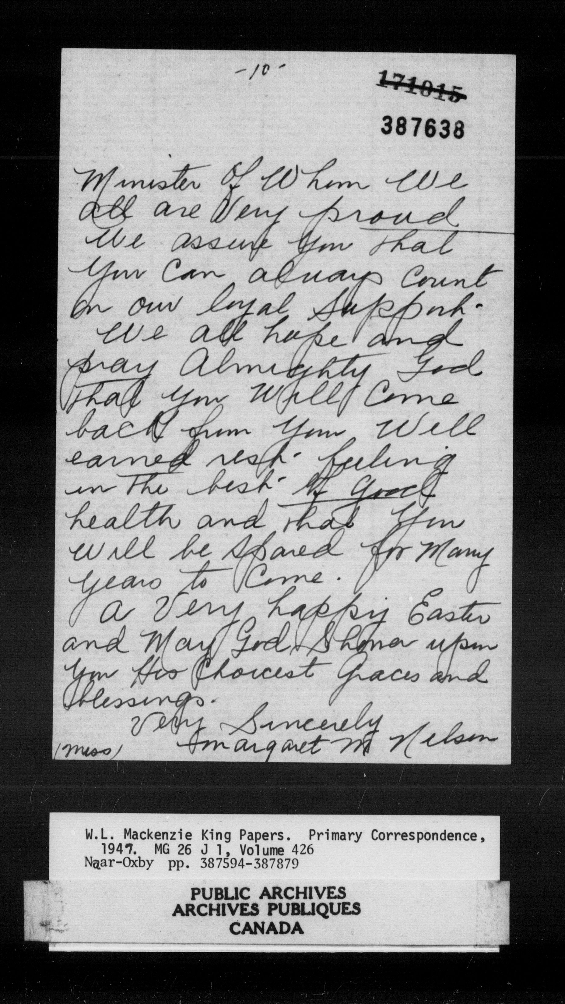 William Lyon Mackenzie King : Primary series correspondence (J1) - 11039