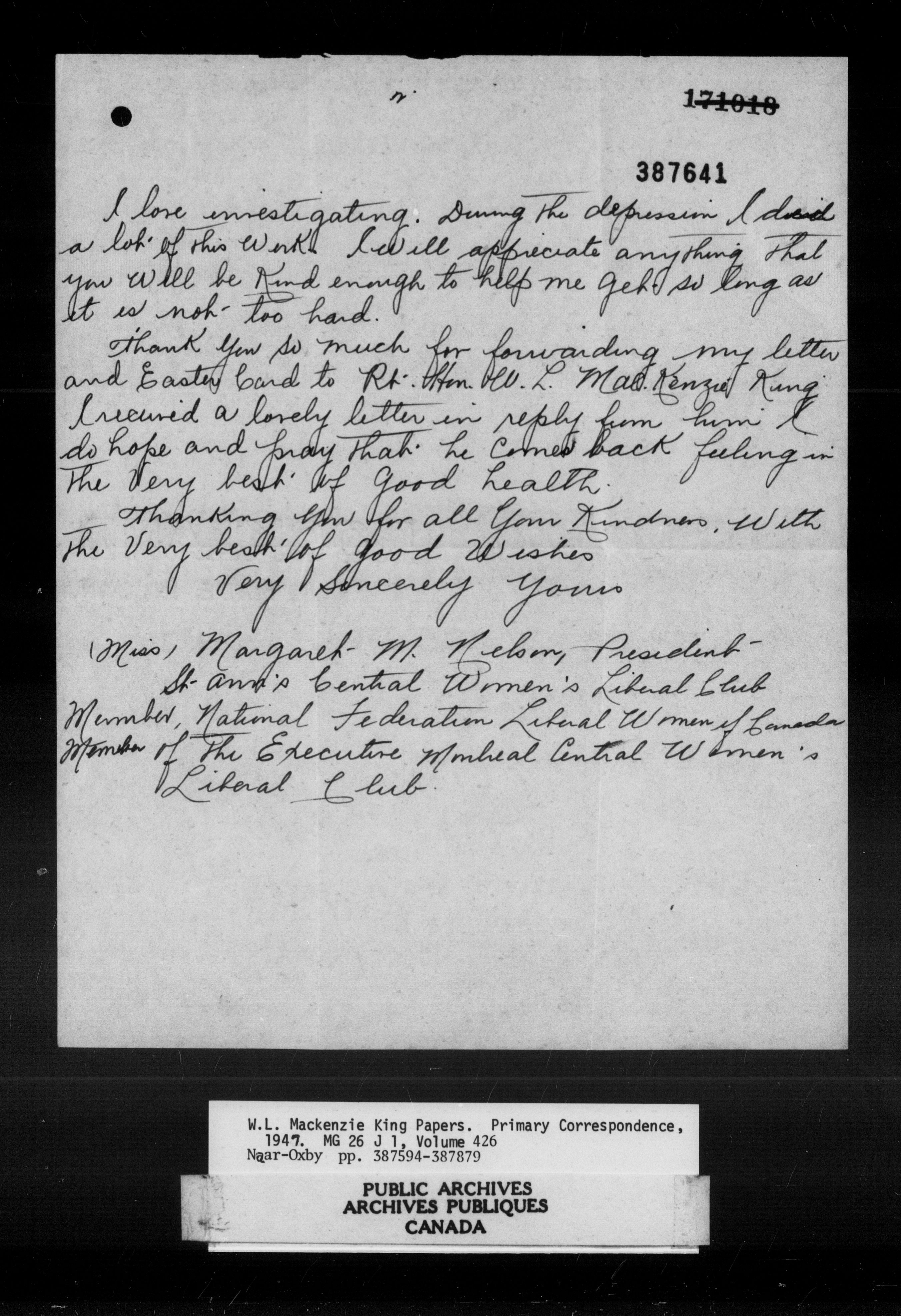 William Lyon Mackenzie King : Primary series correspondence (J1) - 11039