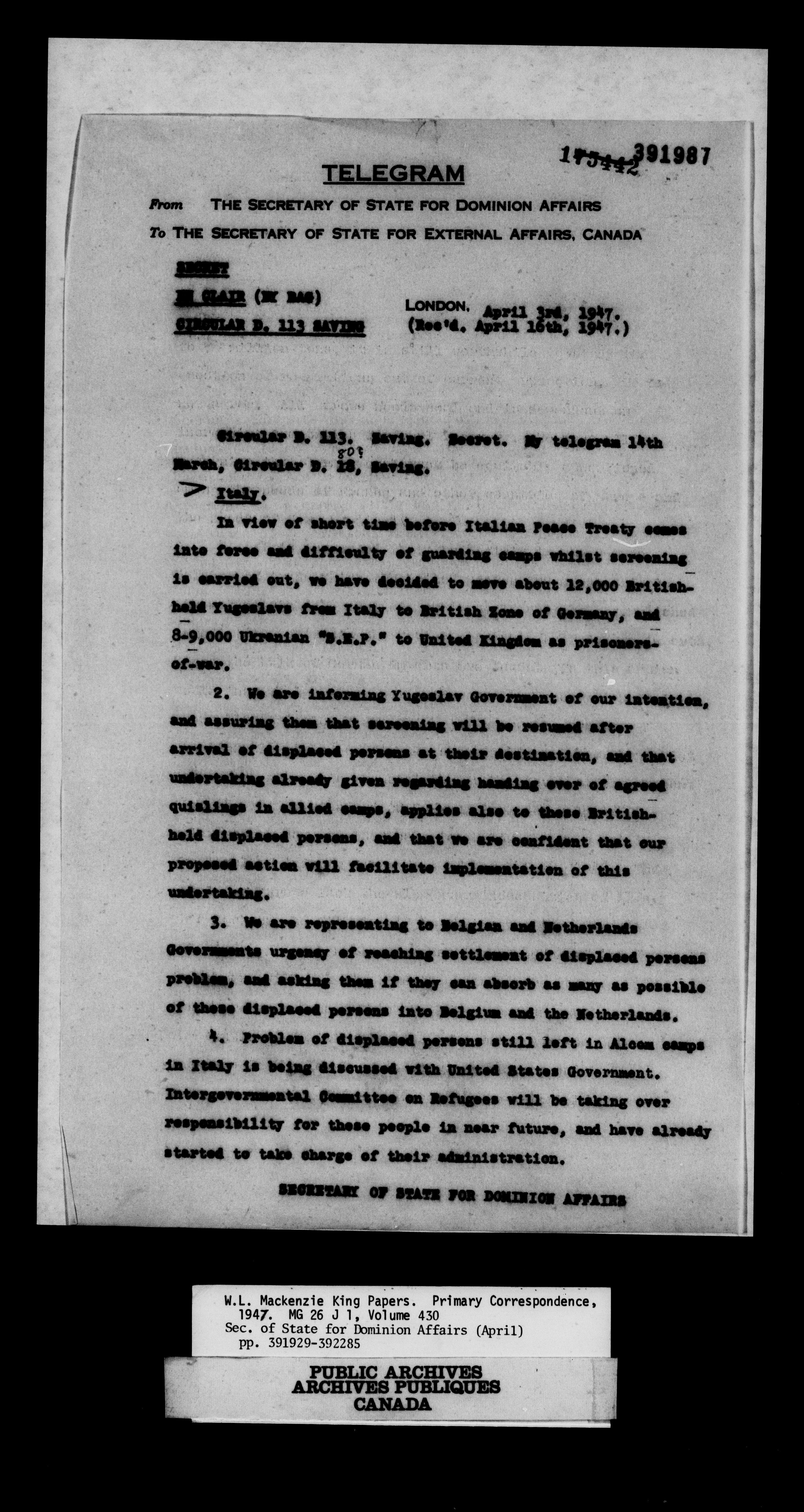 William Lyon Mackenzie King : Primary series correspondence (J1) : C-11043