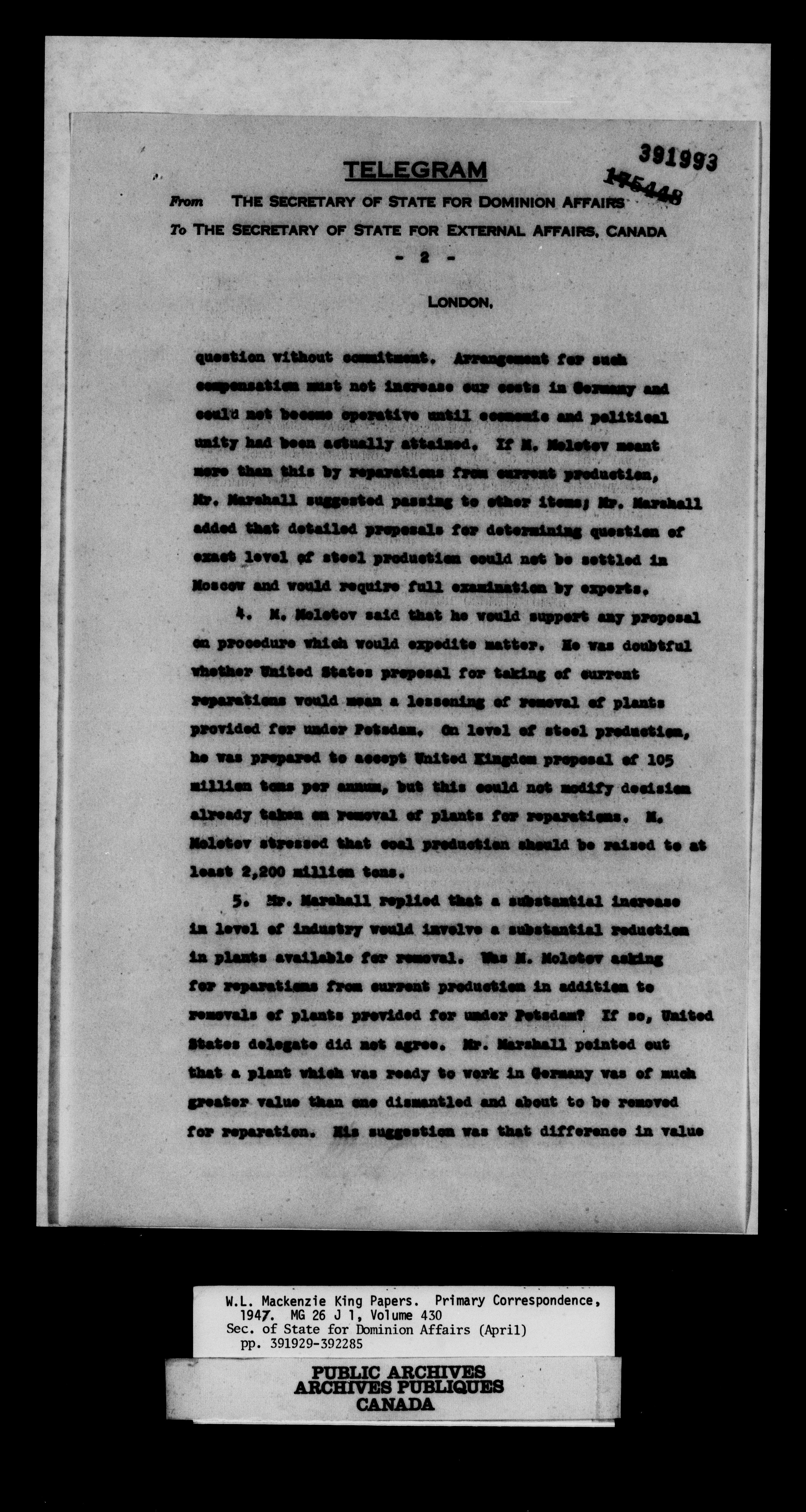 William Lyon Mackenzie King : Primary series correspondence (J1) : C-11043