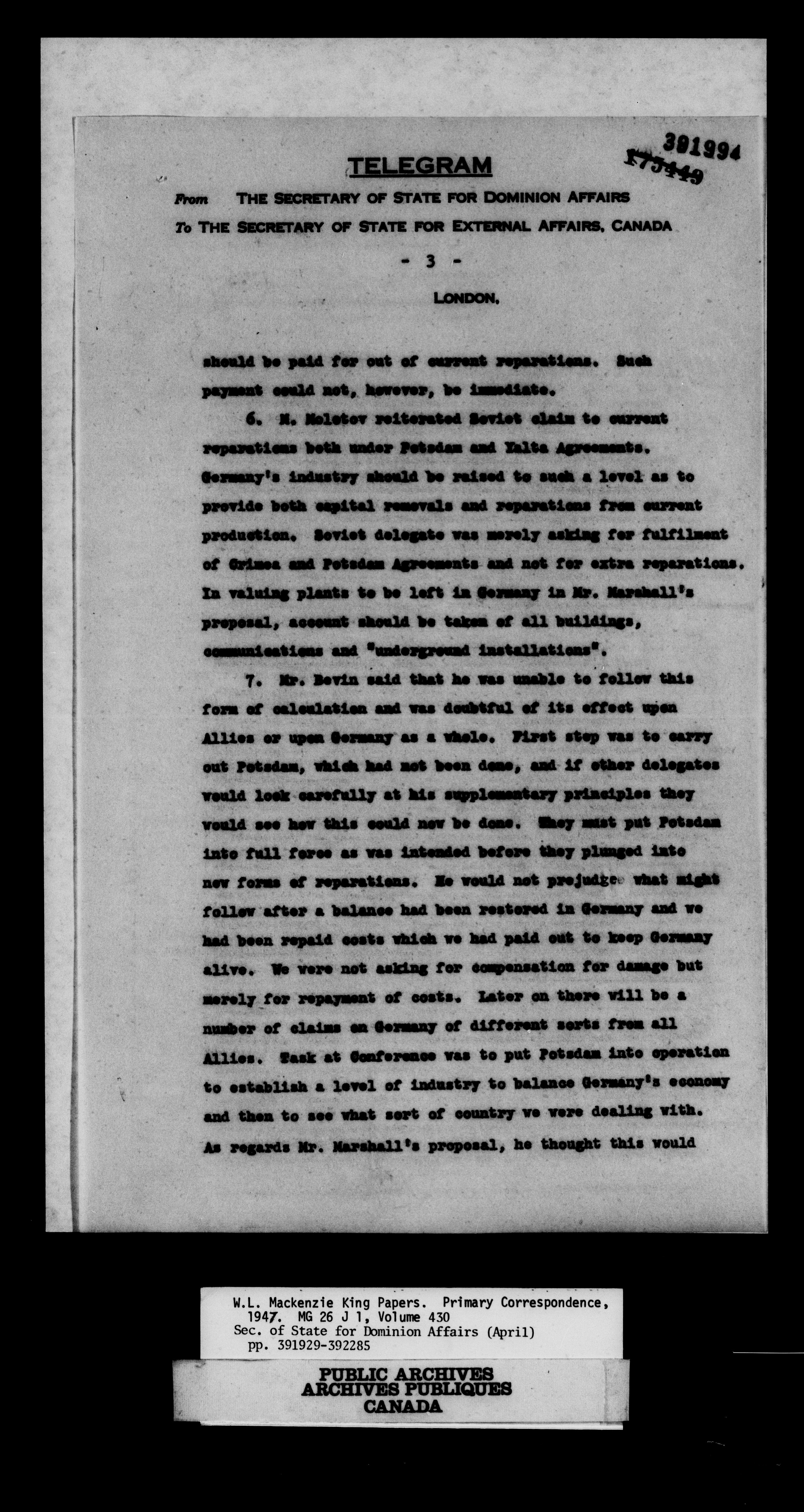 William Lyon Mackenzie King : Primary series correspondence (J1) : C-11043