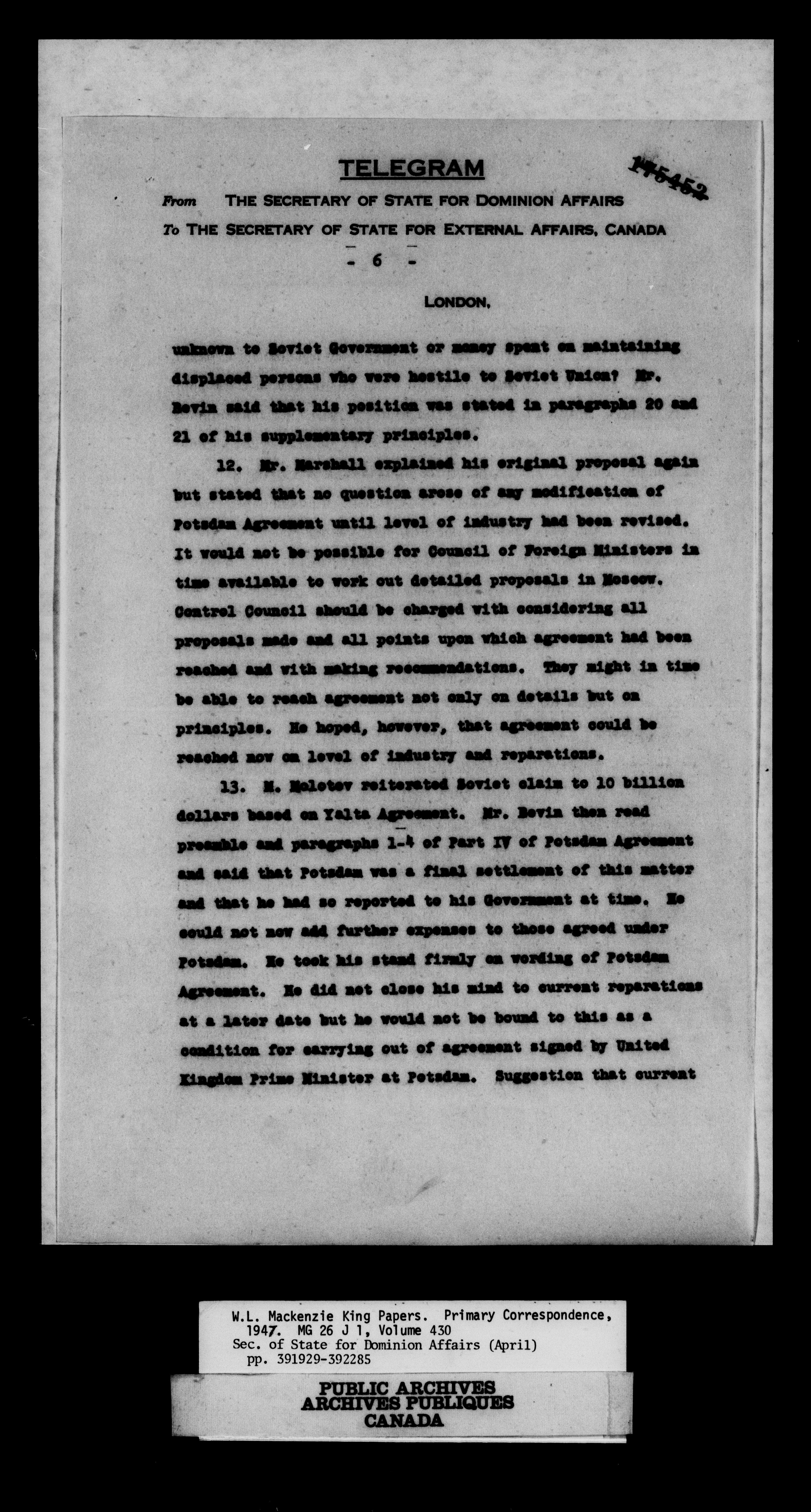 William Lyon Mackenzie King : Primary series correspondence (J1) : C-11043