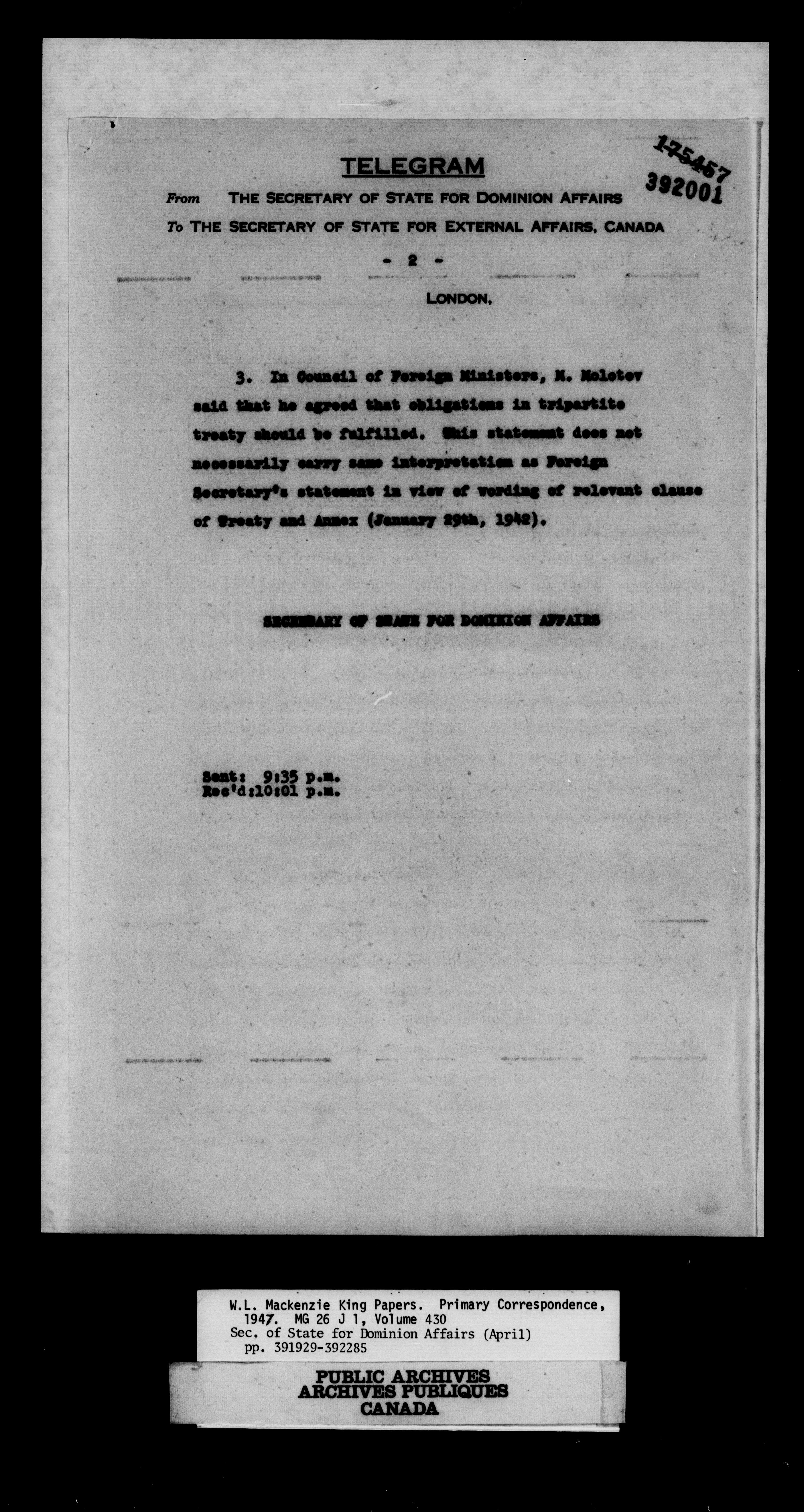 William Lyon Mackenzie King : Primary series correspondence (J1) - 11043