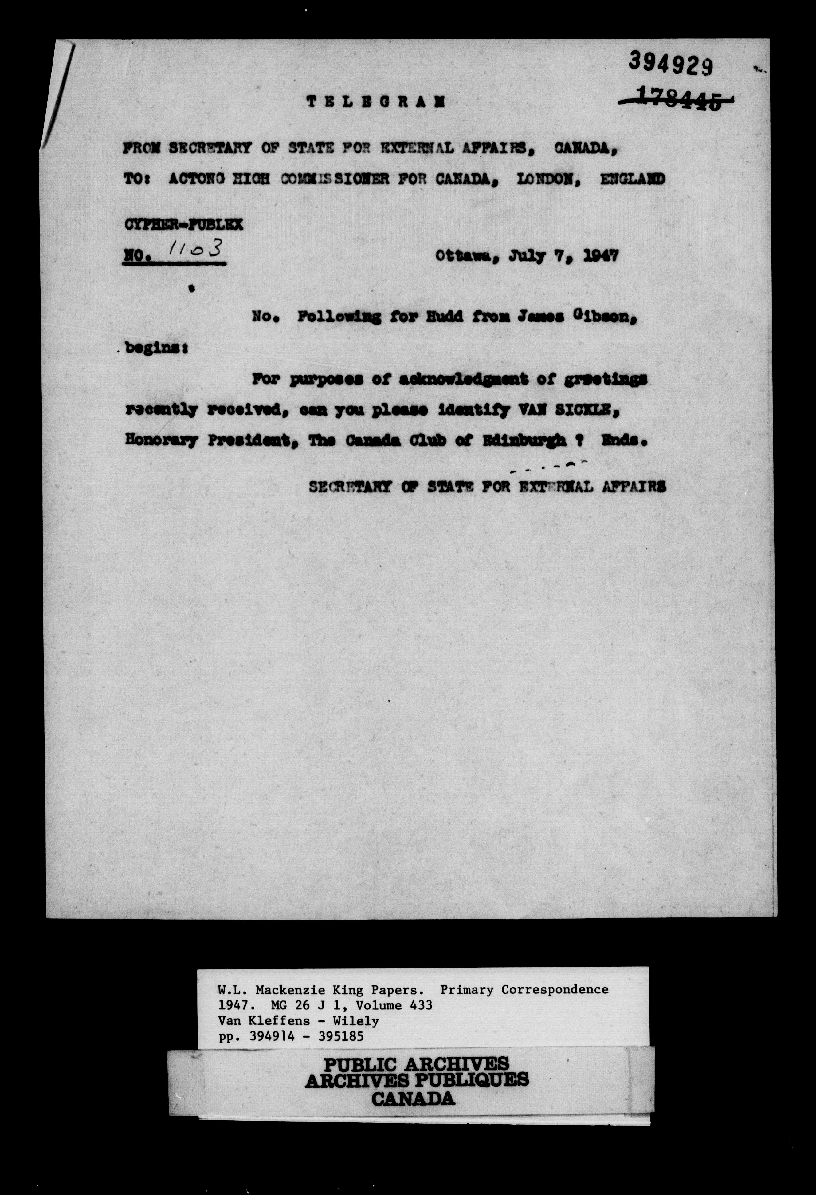 William Lyon Mackenzie King : Primary series correspondence (J1) - 11045