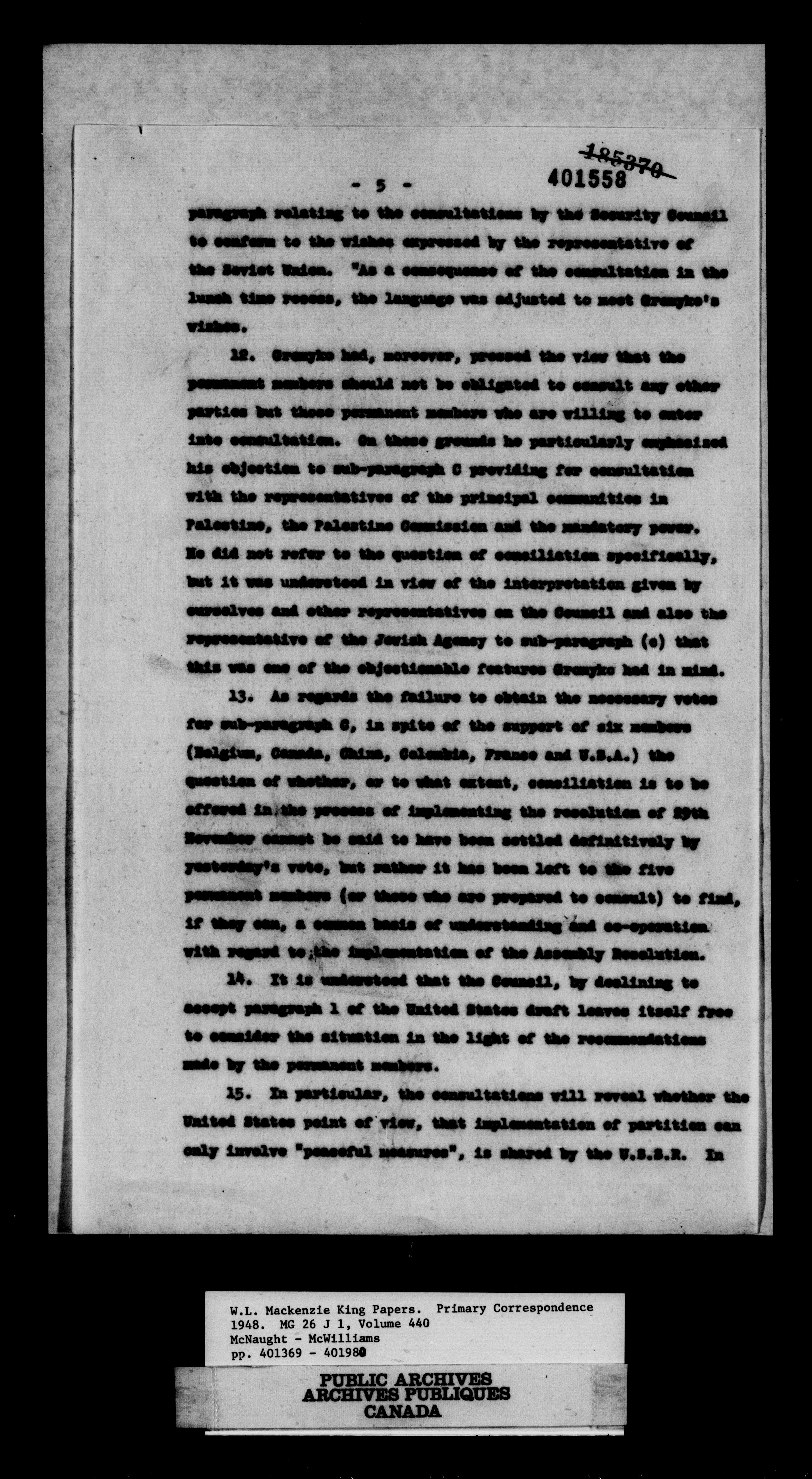William Lyon Mackenzie King : Primary series correspondence (J1) - 11049