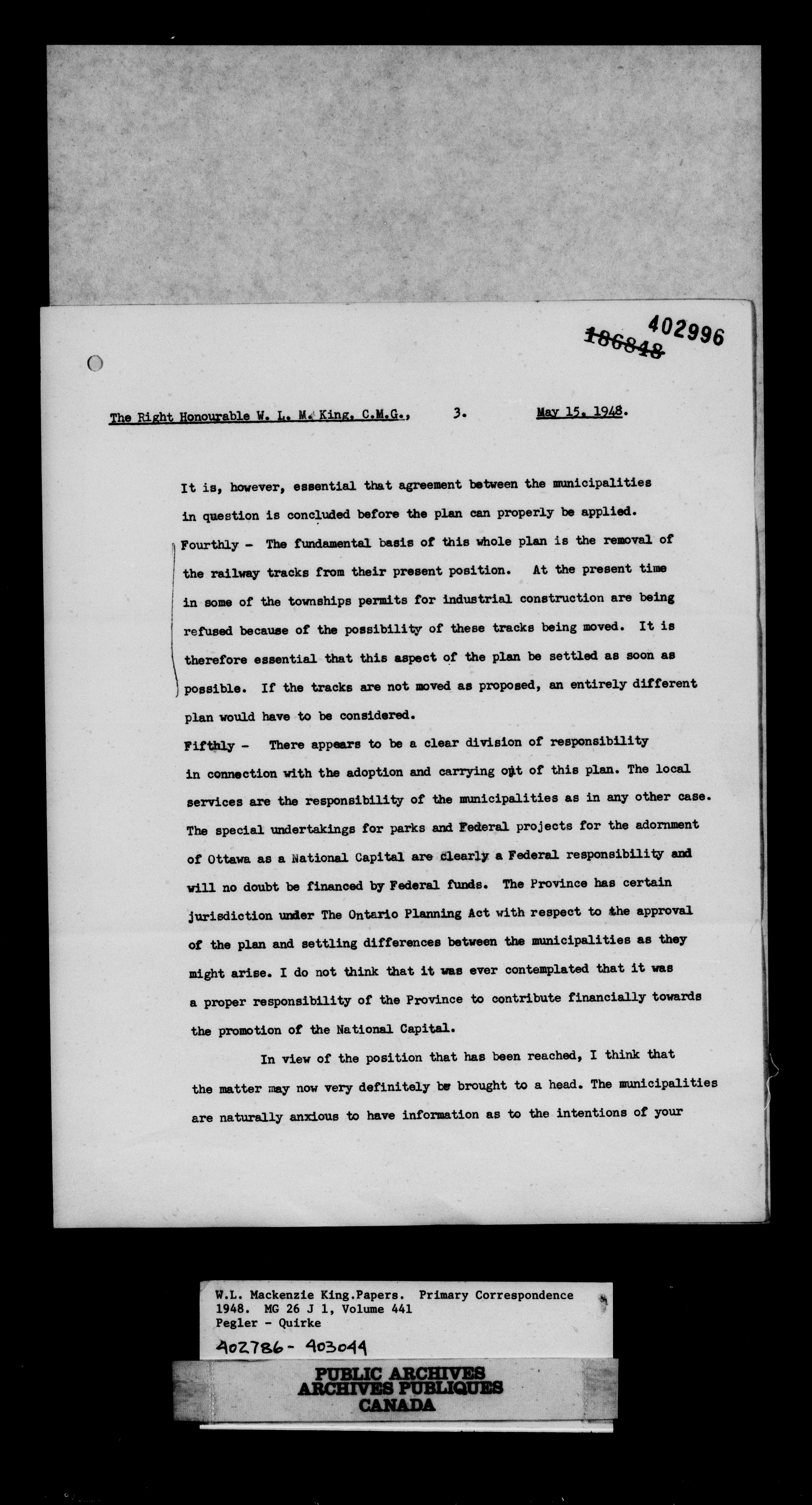 William Lyon Mackenzie King : Primary series correspondence (J1) : C-11050
