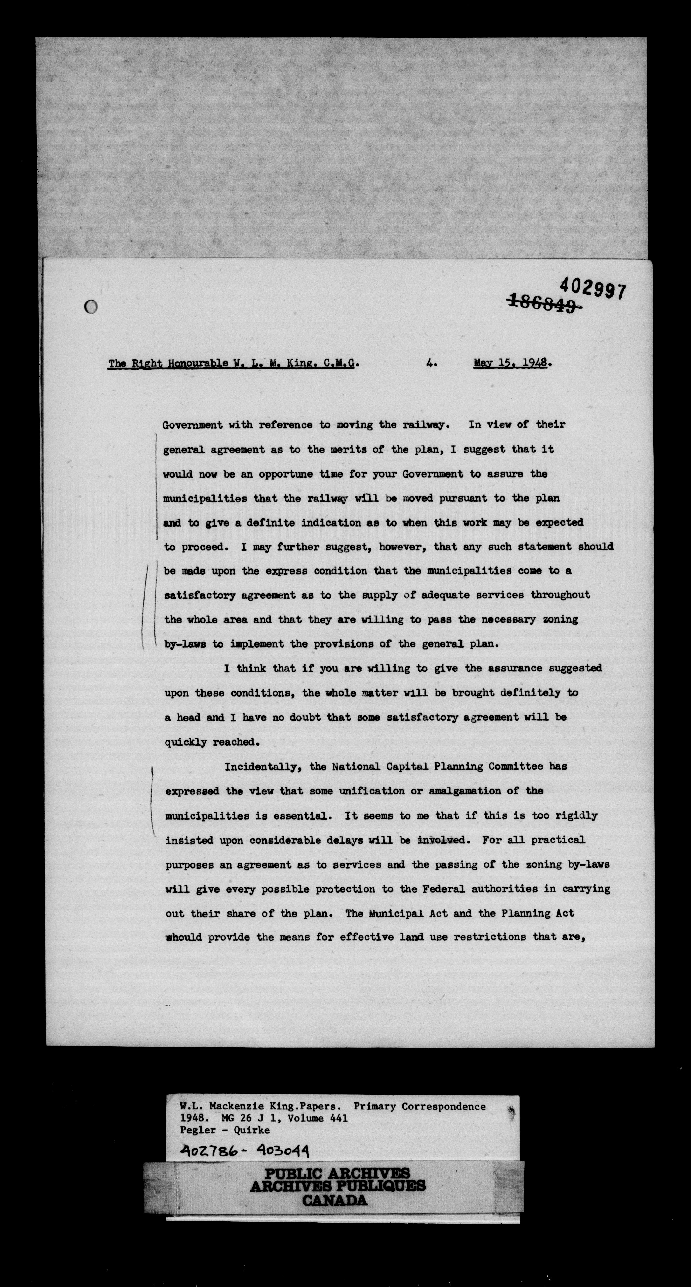 William Lyon Mackenzie King : Primary series correspondence (J1) - 11050