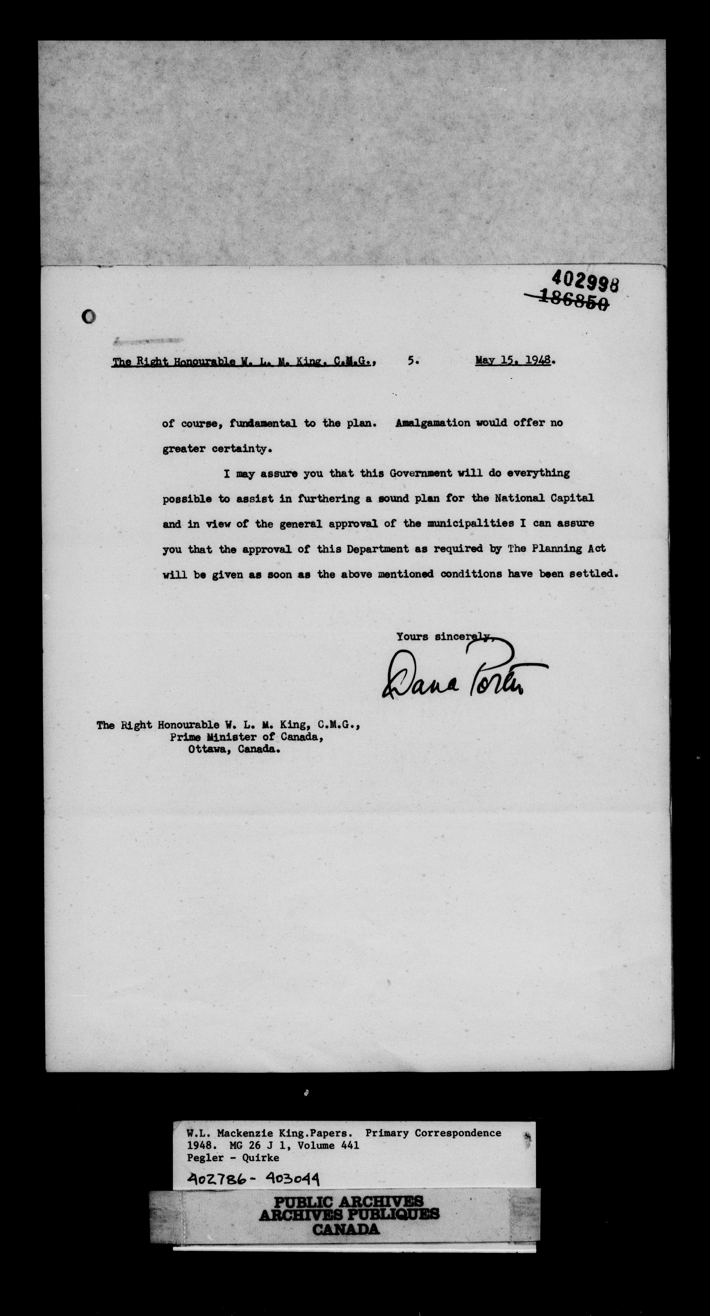 William Lyon Mackenzie King : Primary series correspondence (J1) - 11050