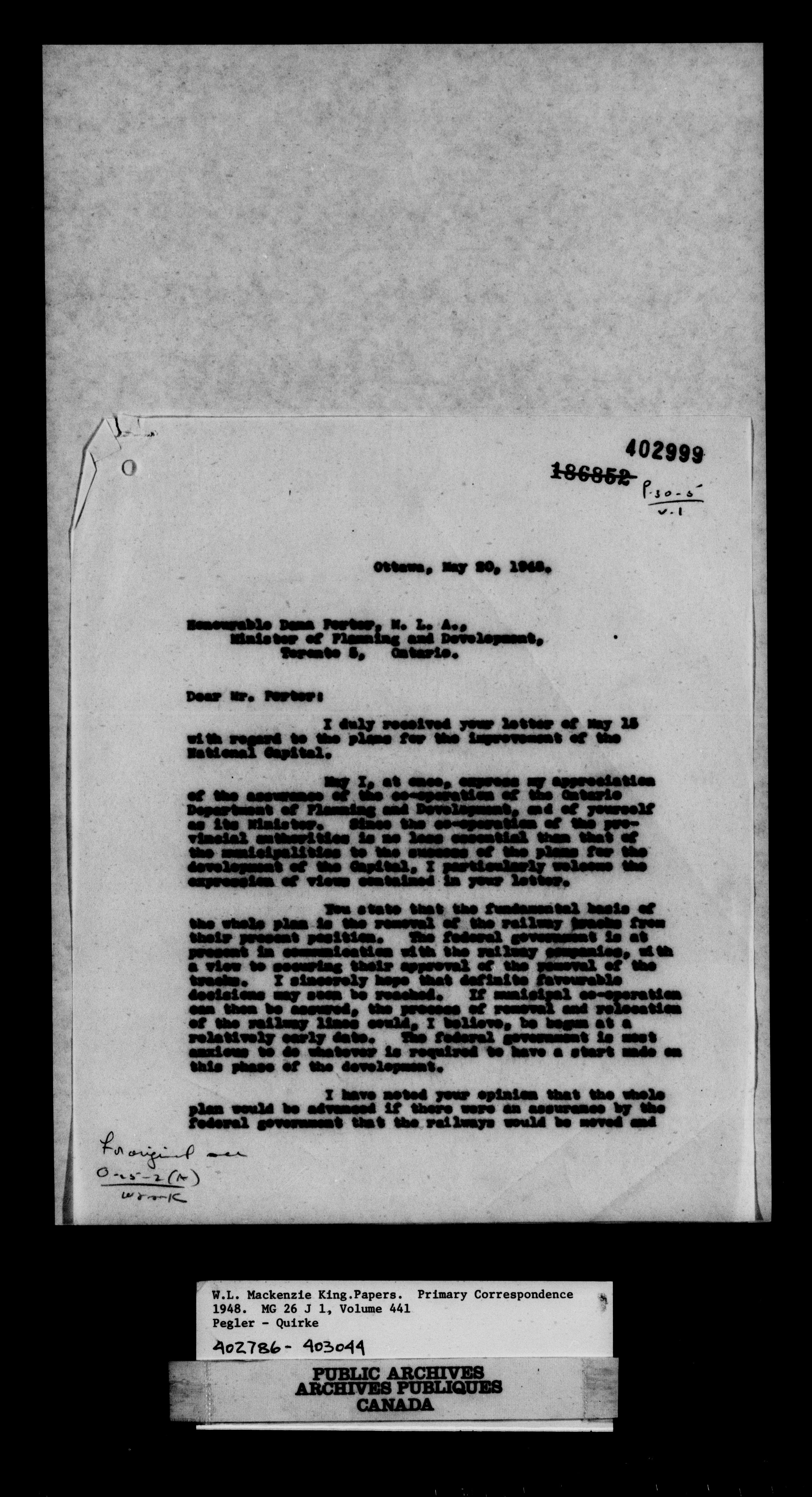 William Lyon Mackenzie King : Primary series correspondence (J1) : C-11050