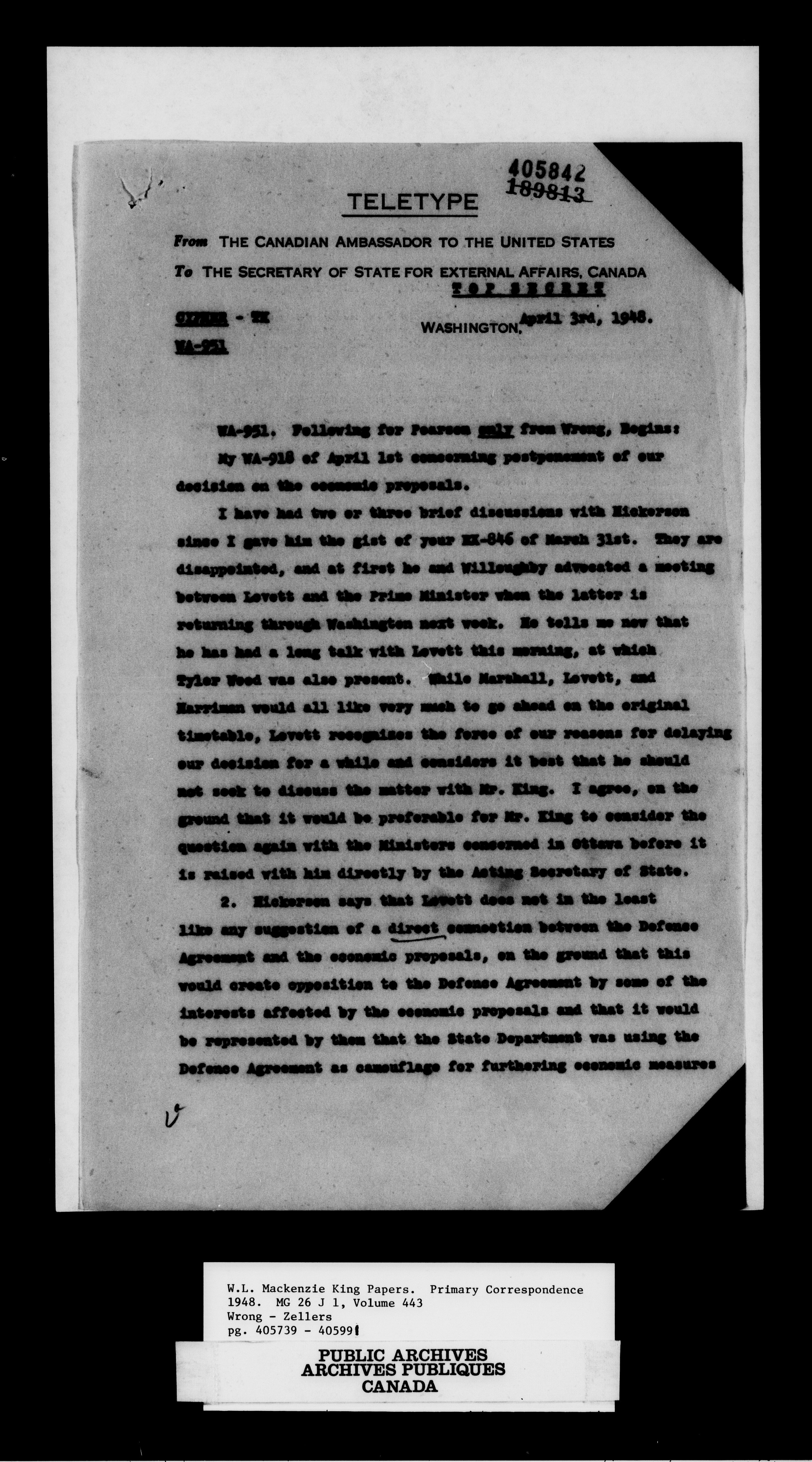 William Lyon Mackenzie King : Primary series correspondence (J1) - 11052