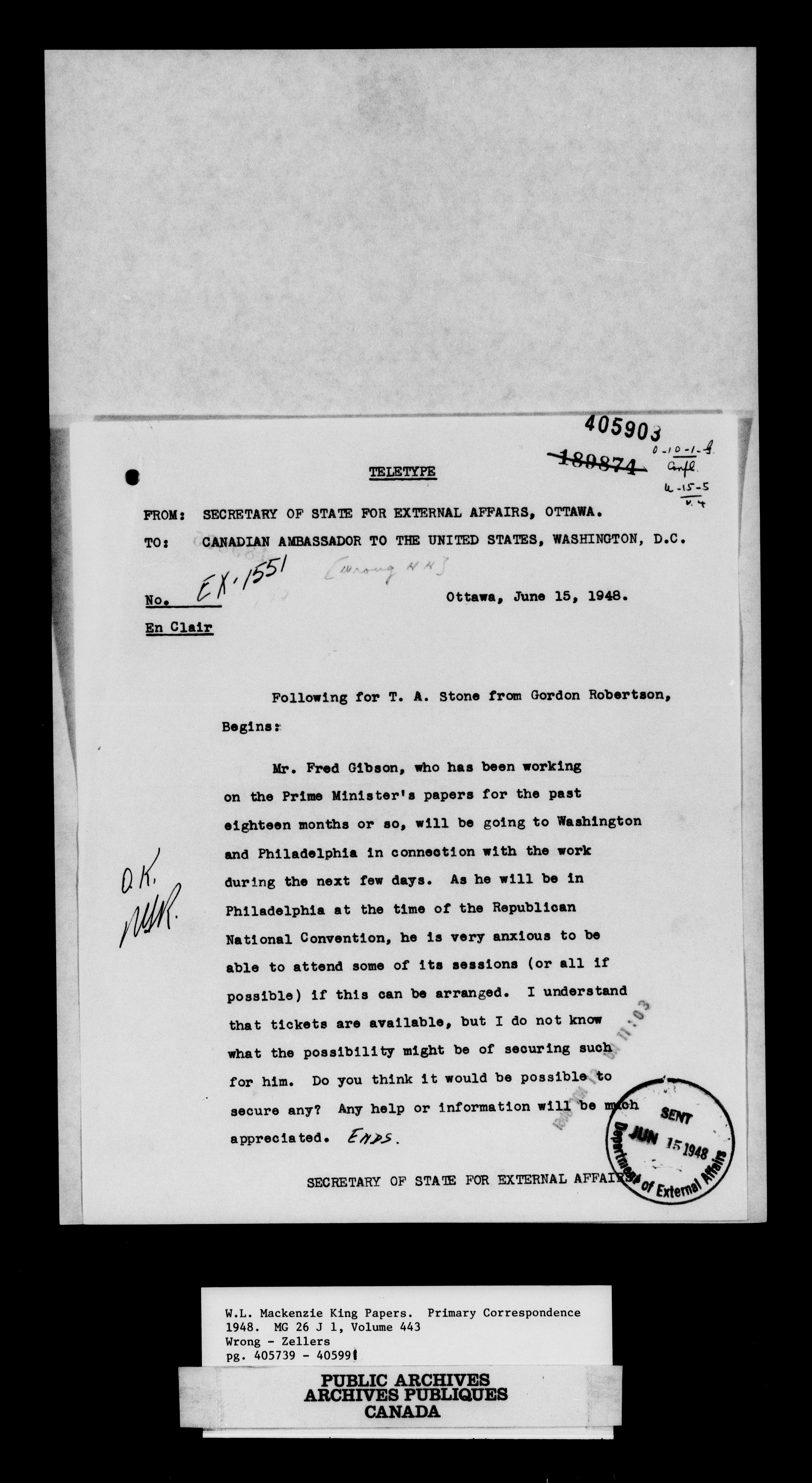 William Lyon Mackenzie King : Primary series correspondence (J1) - 11052