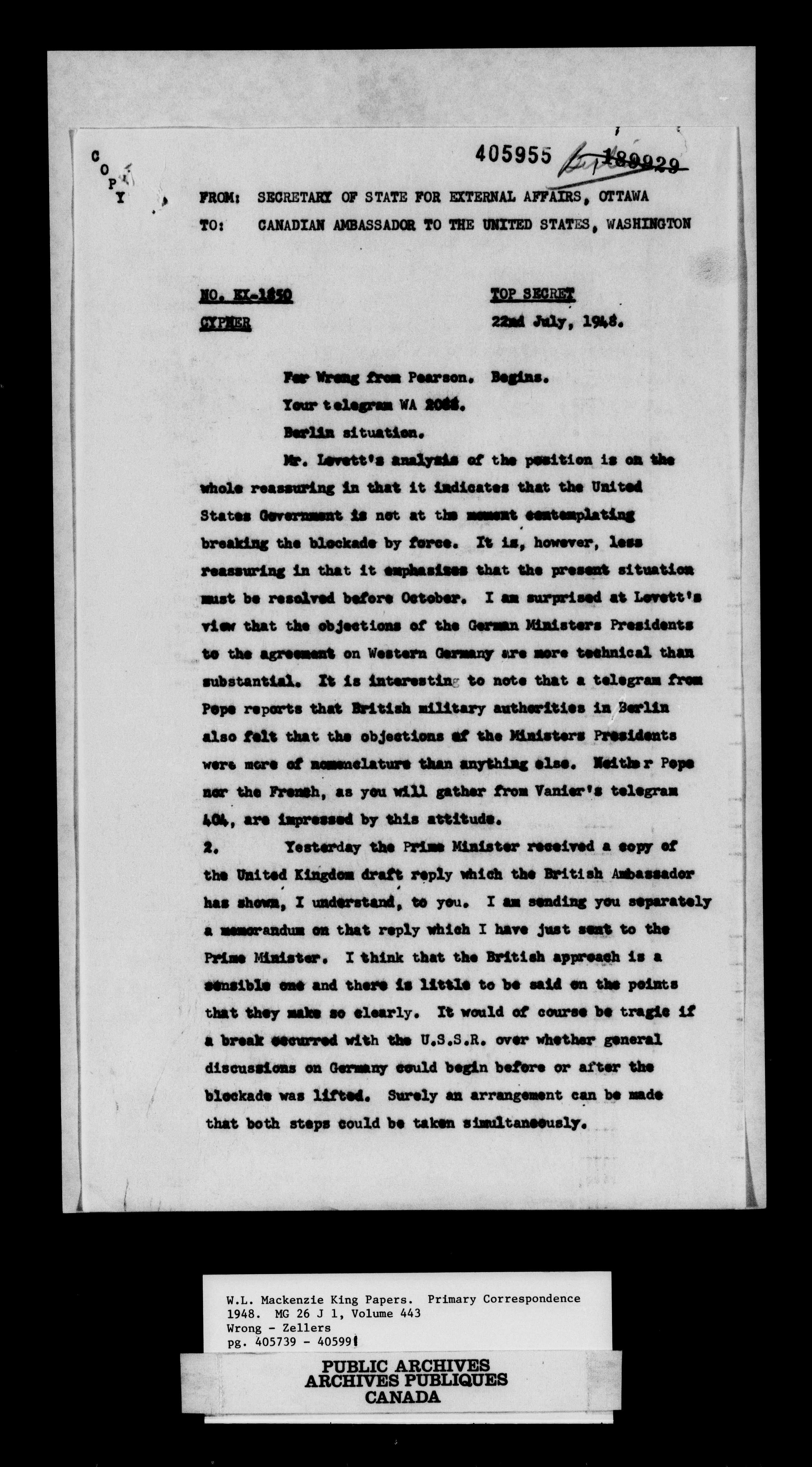 William Lyon Mackenzie King : Primary series correspondence (J1) - 11052