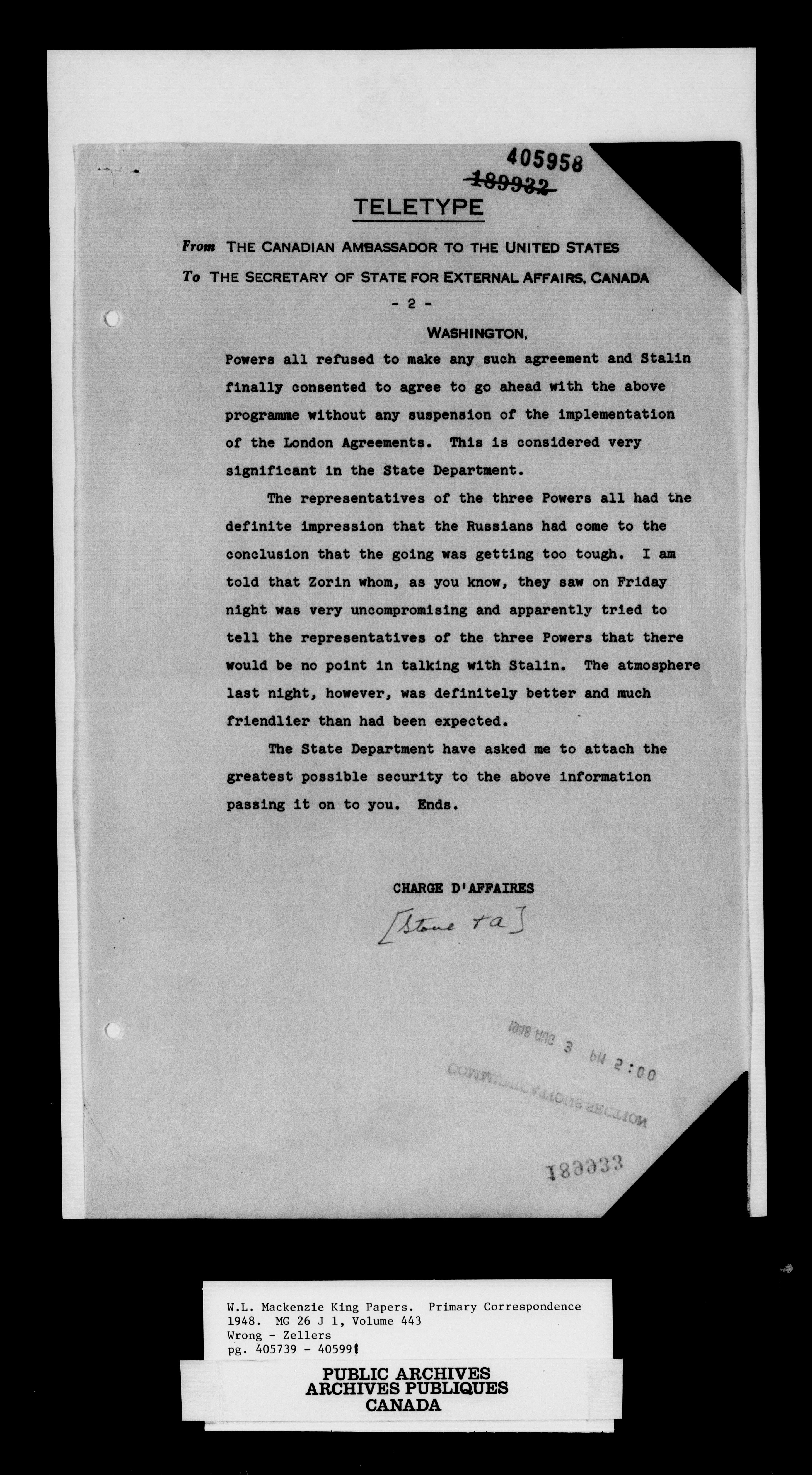 William Lyon Mackenzie King : Primary series correspondence (J1) - 11052