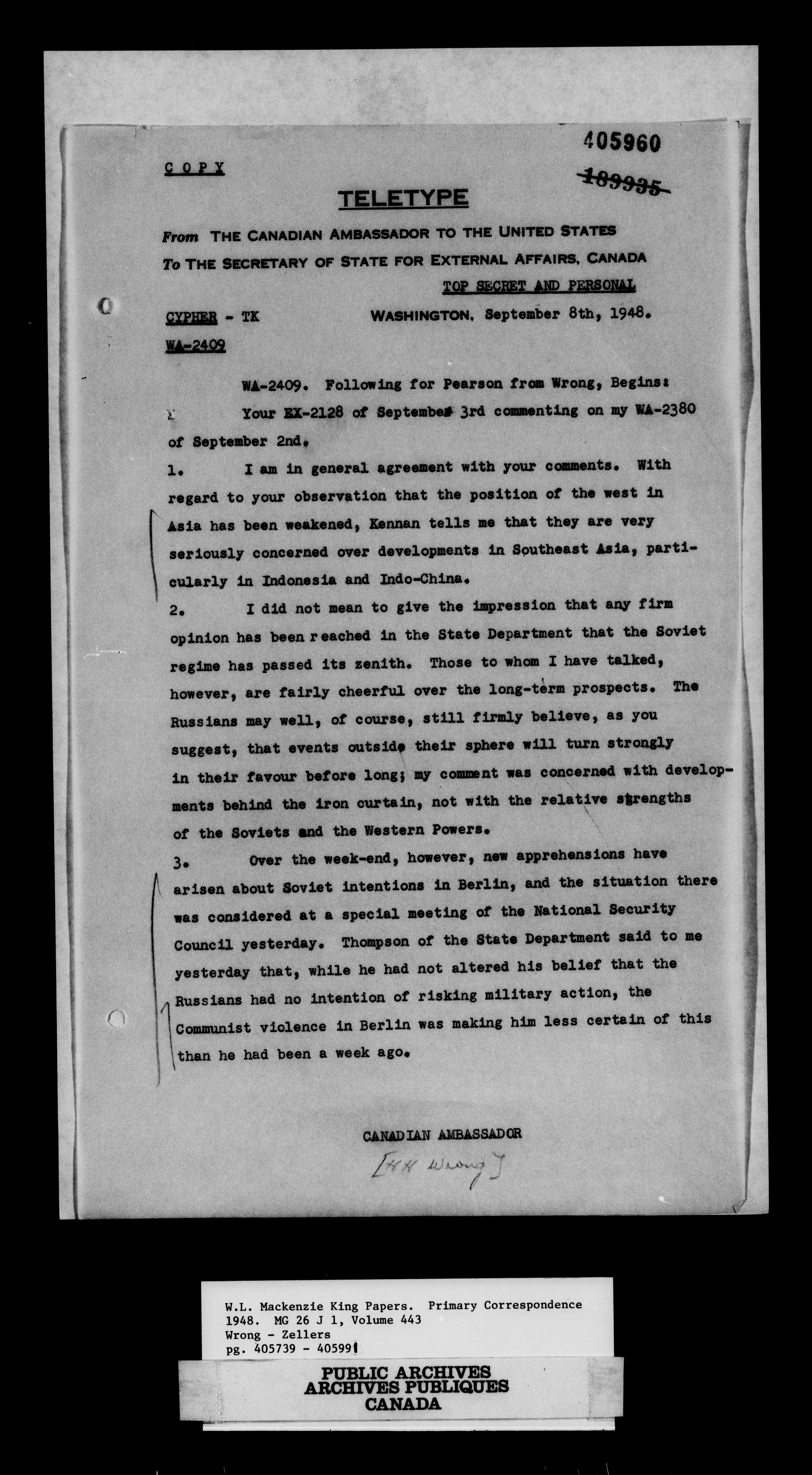 William Lyon Mackenzie King : Primary series correspondence (J1) - 11052
