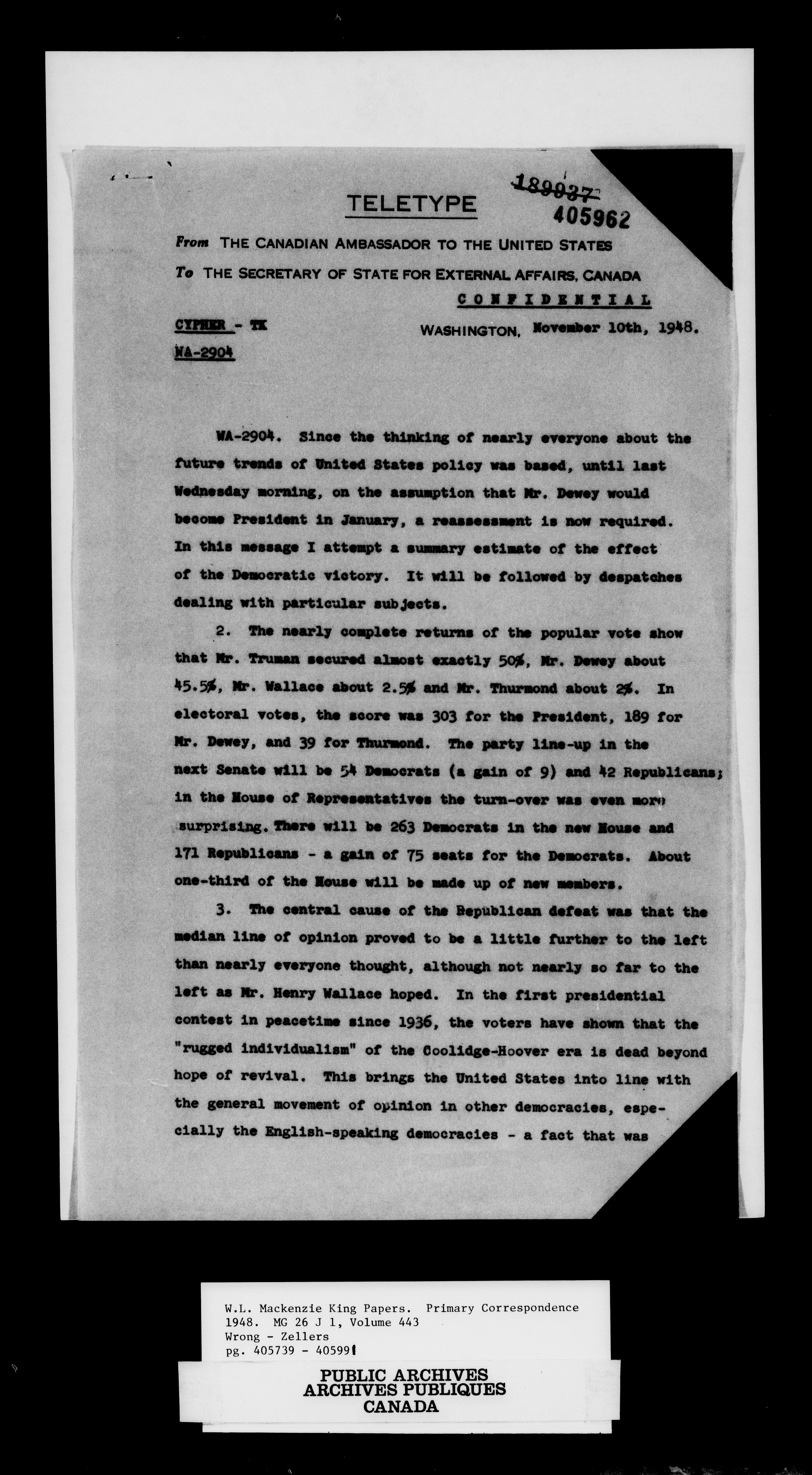 William Lyon Mackenzie King : Primary series correspondence (J1) - 11052