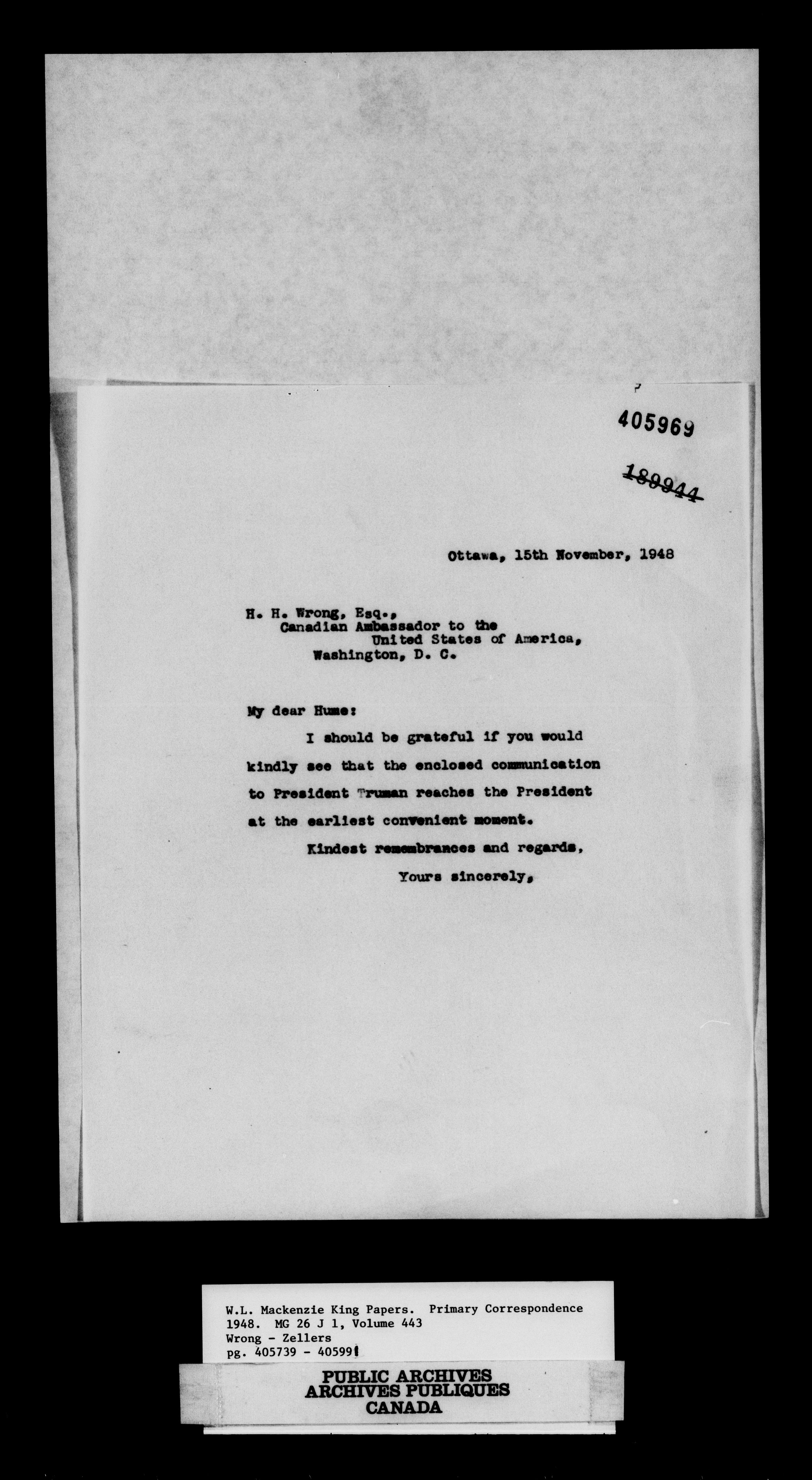 William Lyon Mackenzie King : Primary series correspondence (J1) - 11052