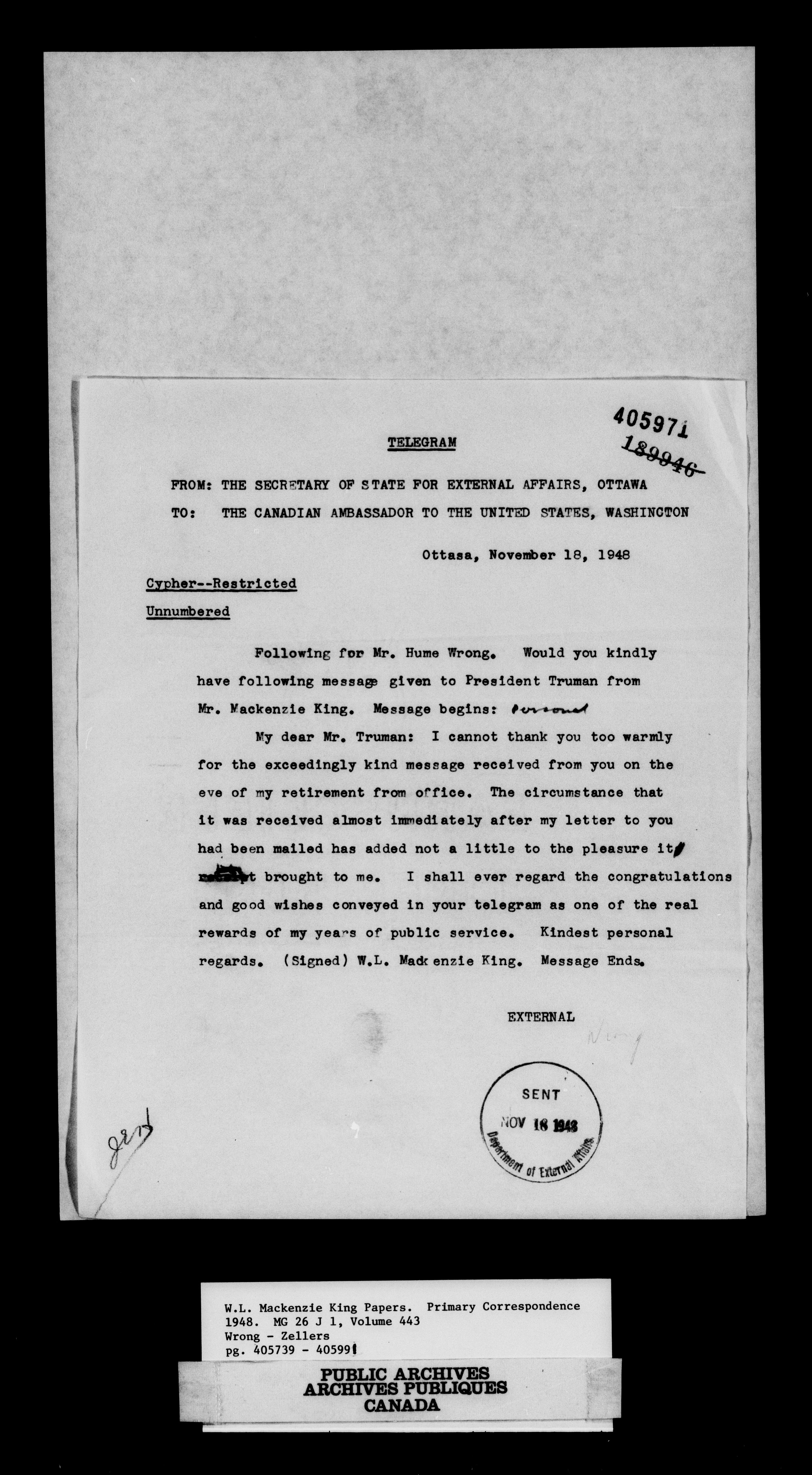 William Lyon Mackenzie King : Primary series correspondence (J1) - 11052