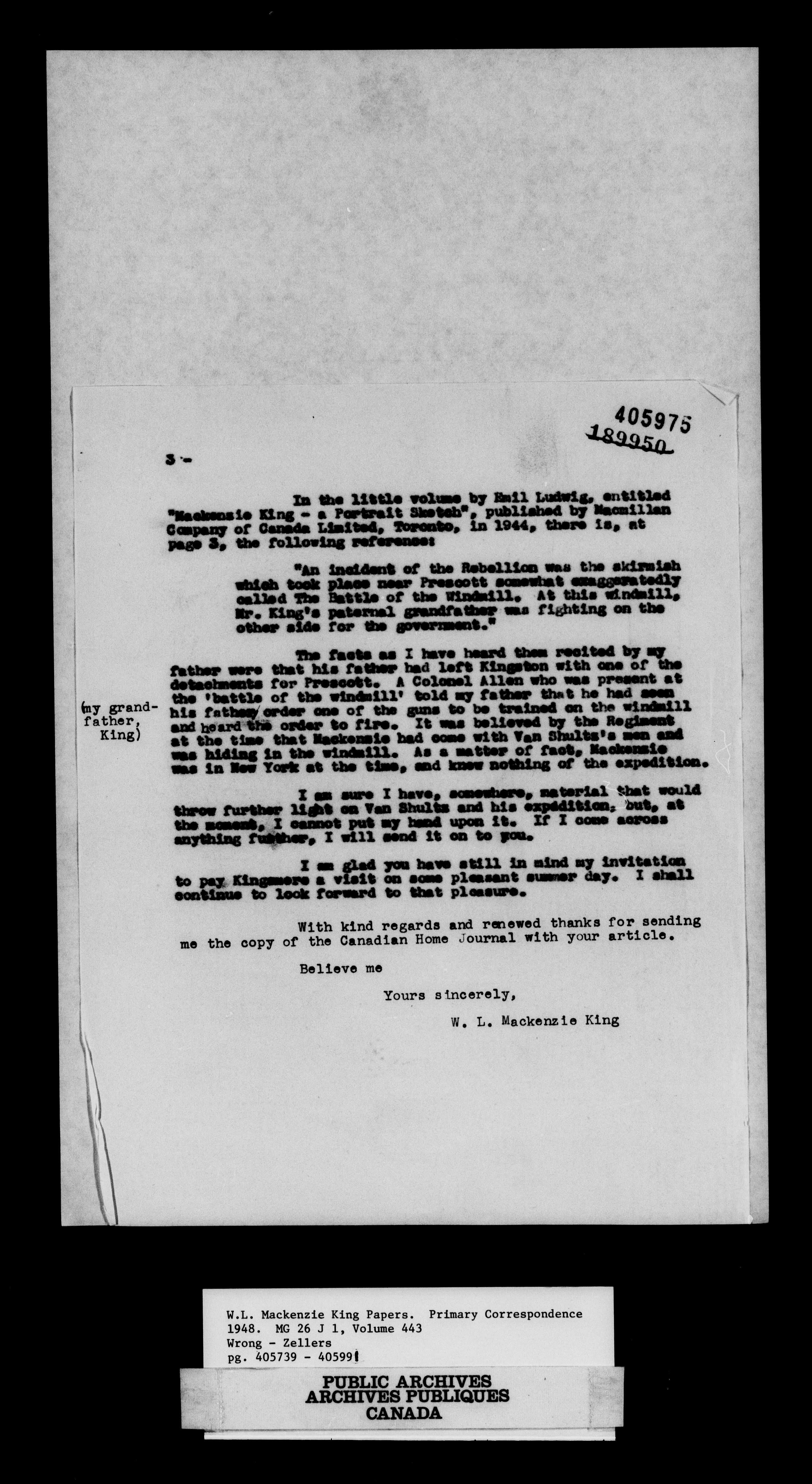 William Lyon Mackenzie King : Primary series correspondence (J1) : C-11052