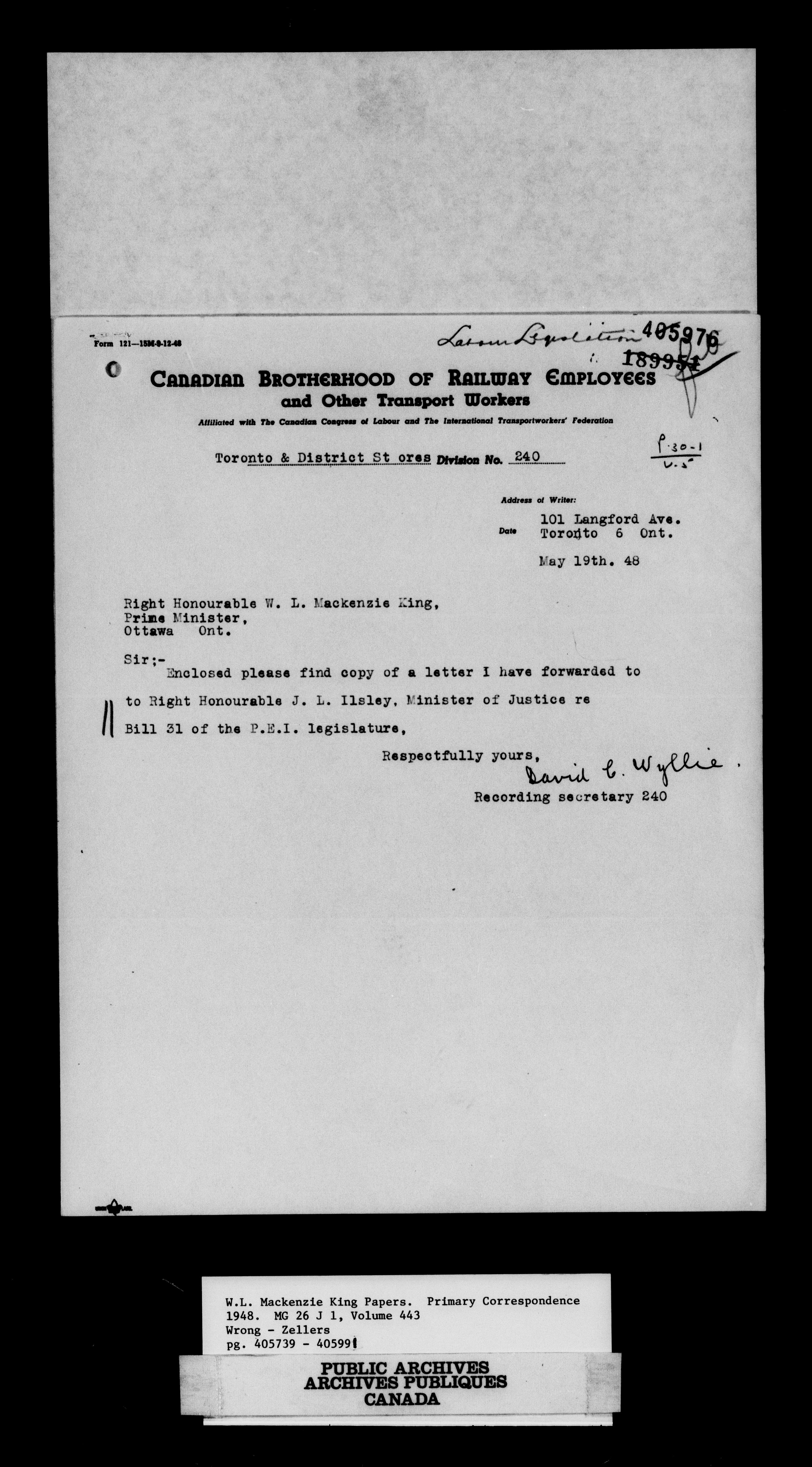 William Lyon Mackenzie King : Primary series correspondence (J1) - 11052