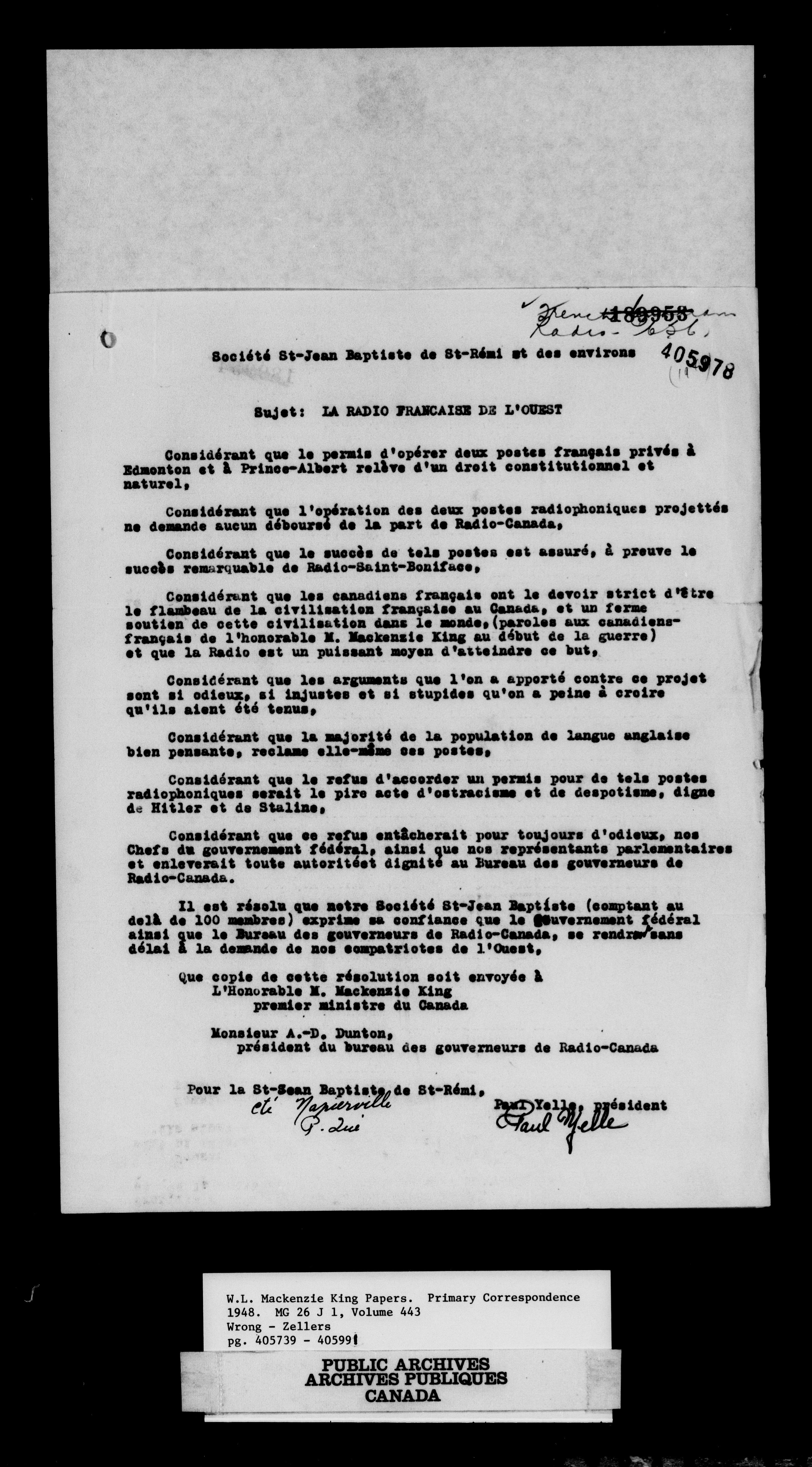 William Lyon Mackenzie King : Primary series correspondence (J1) - 11052