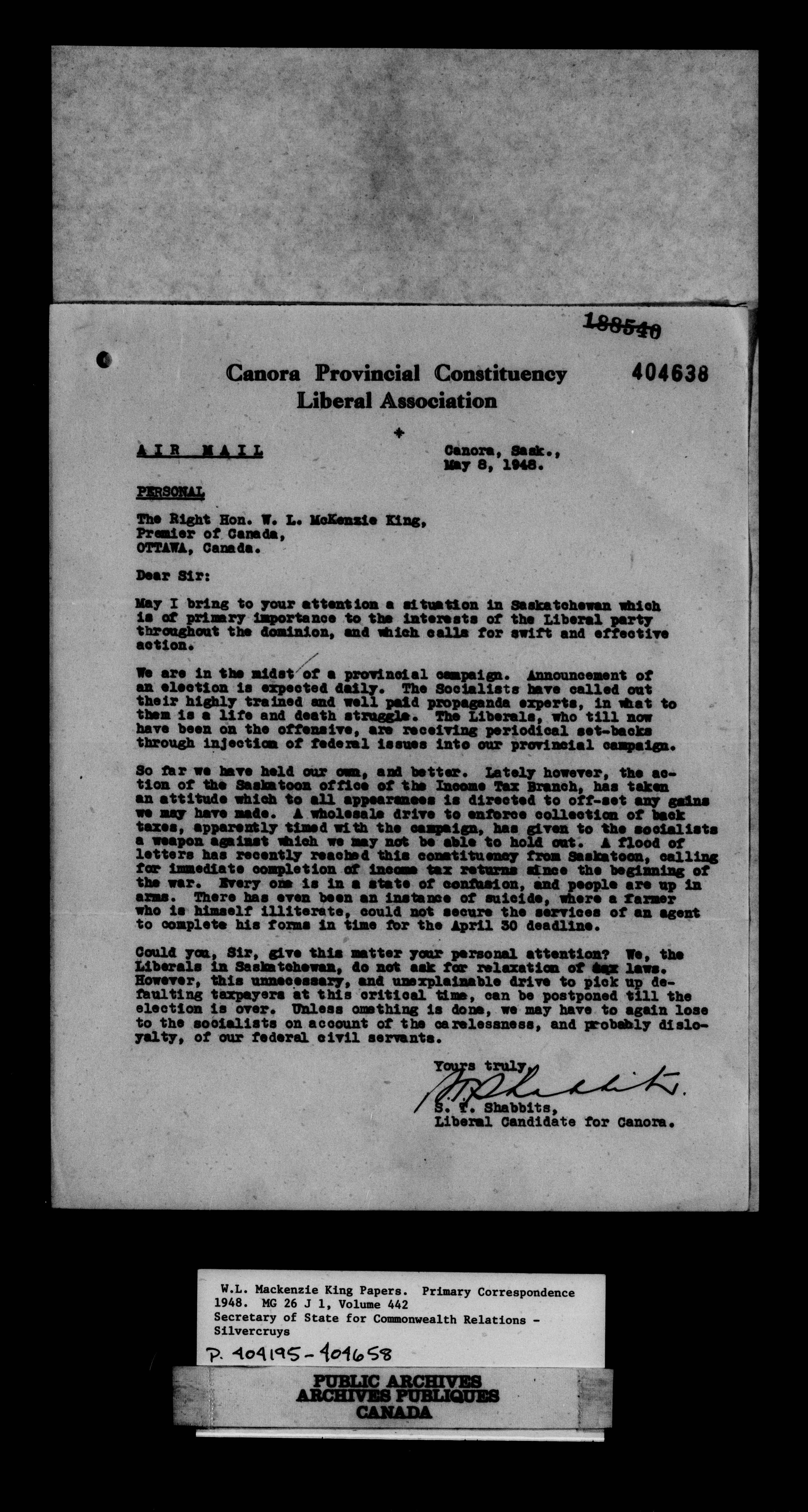 William Lyon Mackenzie King : Primary series correspondence (J1) - 11052