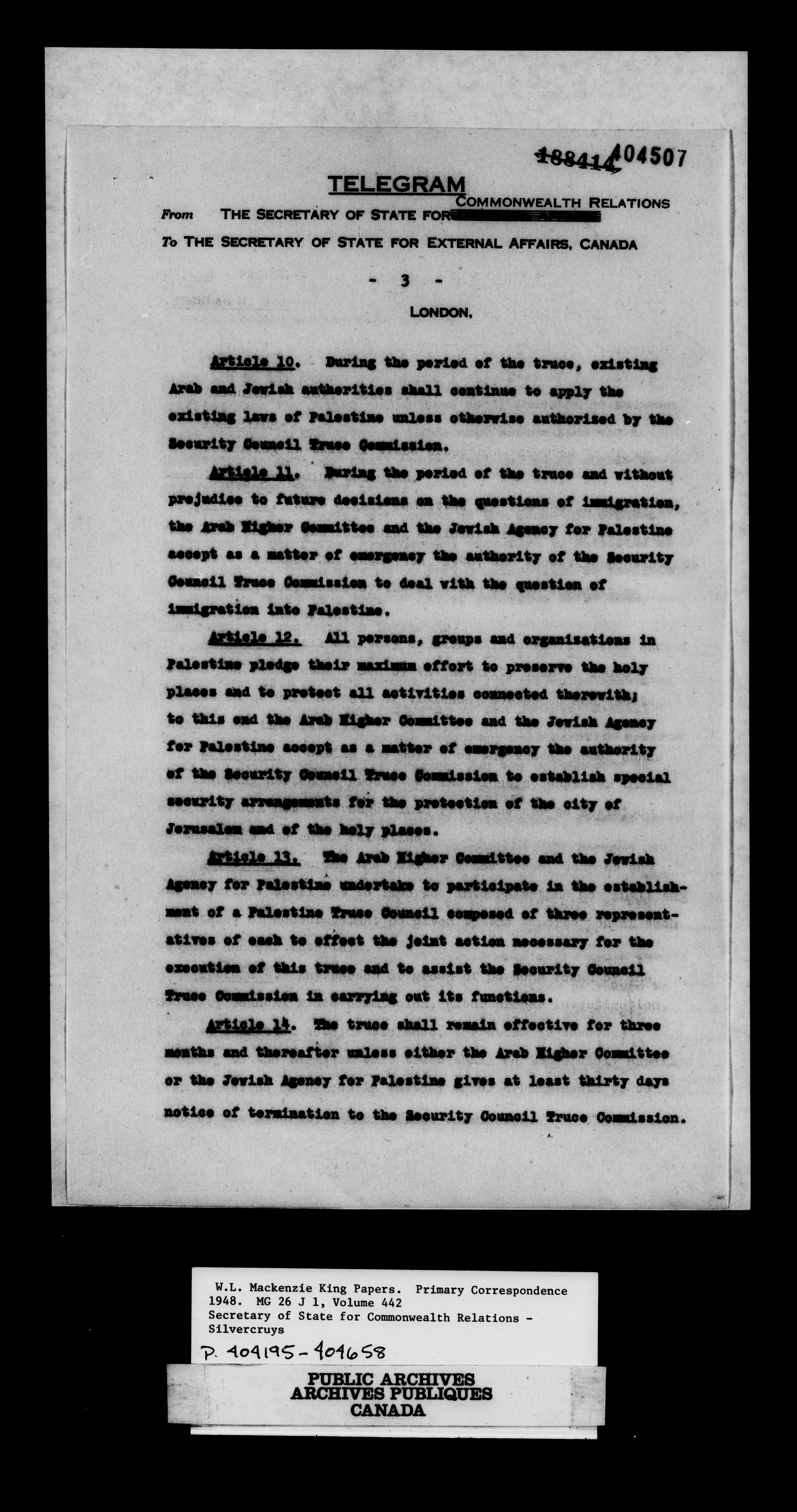 William Lyon Mackenzie King : Primary series correspondence (J1) : C-11052
