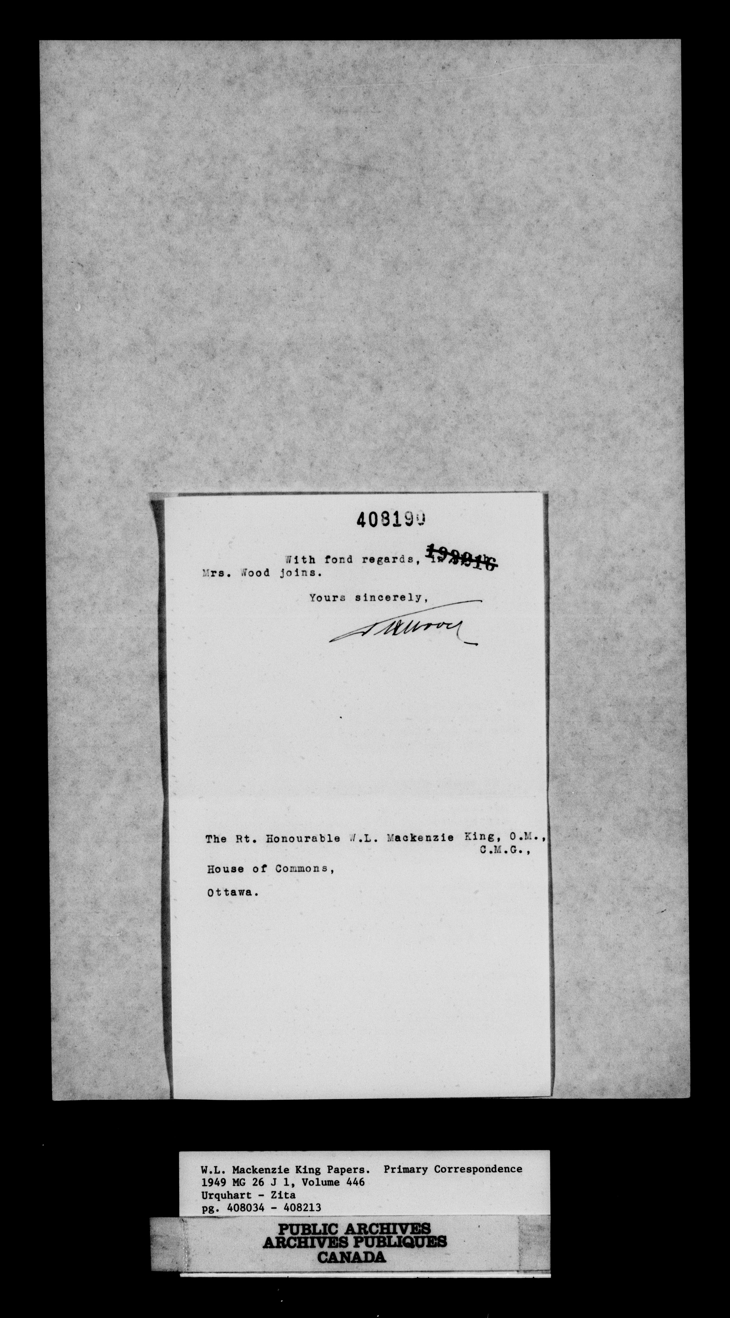 William Lyon Mackenzie King : Primary series correspondence (J1) - 11054