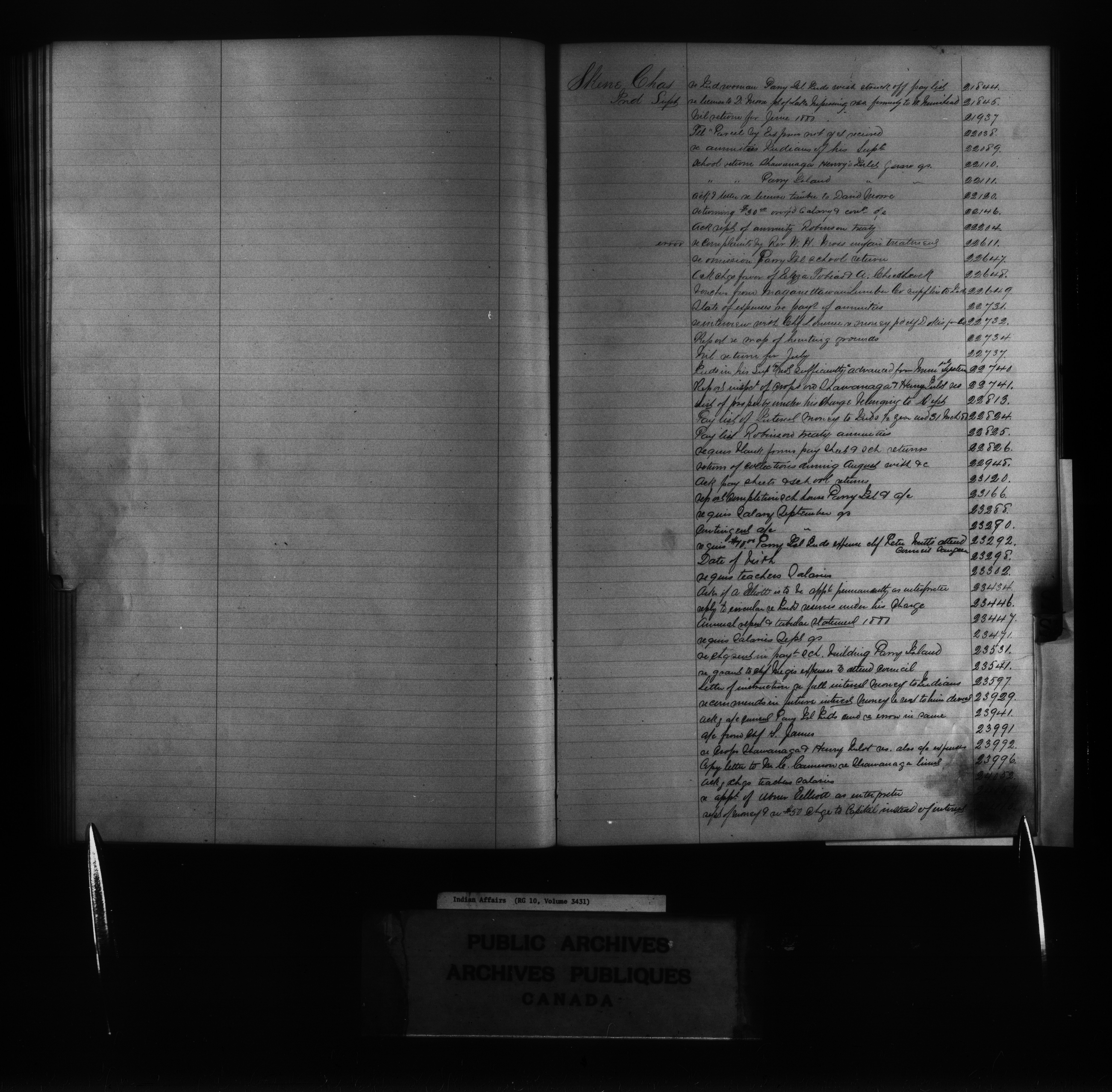Department of Indian Affairs, Headquarters central registry system :registers, indices and indexed registers : C-11066