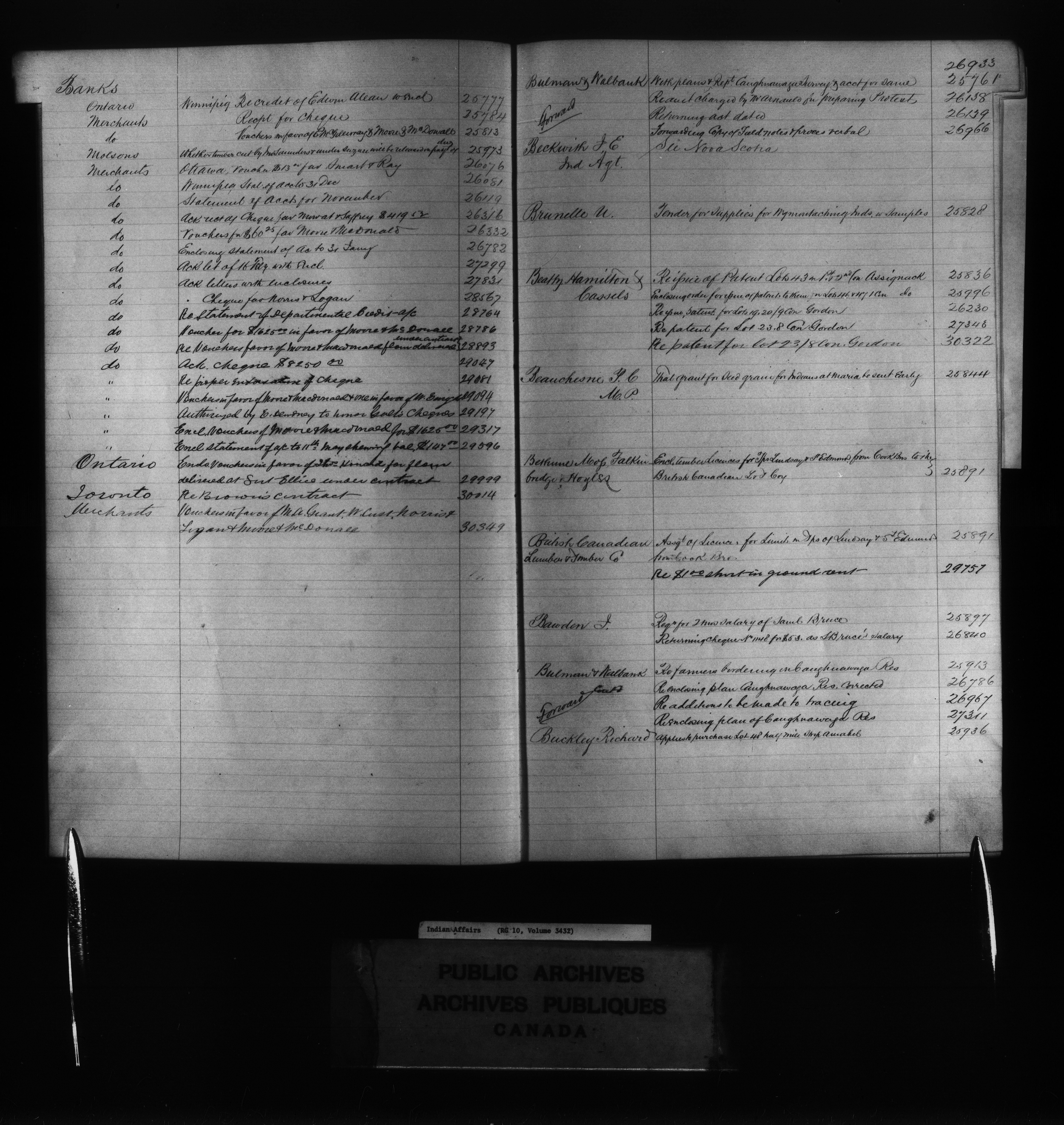 Department of Indian Affairs, Headquarters central registry system :registers, indices and indexed registers : C-11066