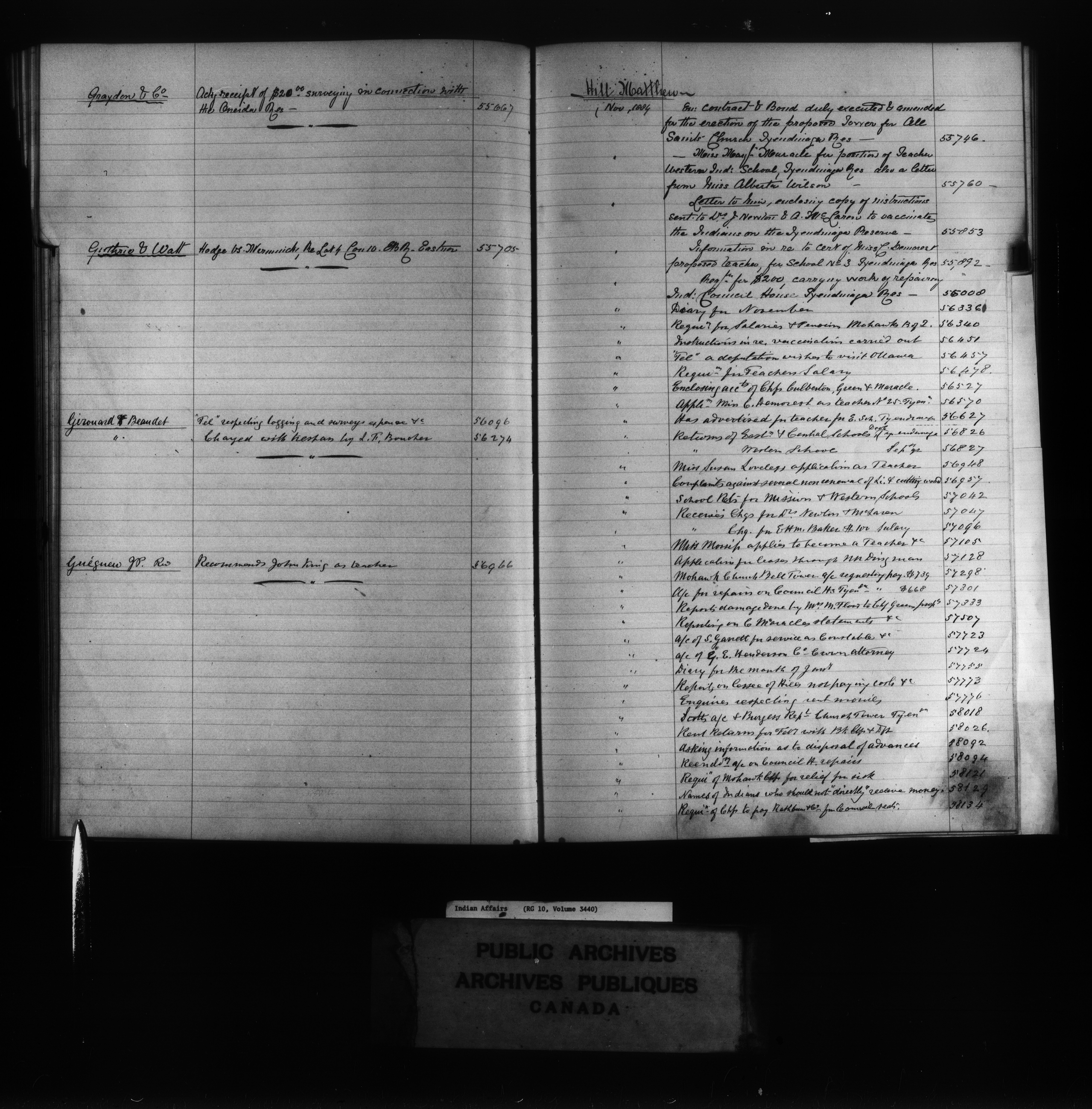 Department of Indian Affairs, Headquarters central registry system :registers, indices and indexed registers : C-11068