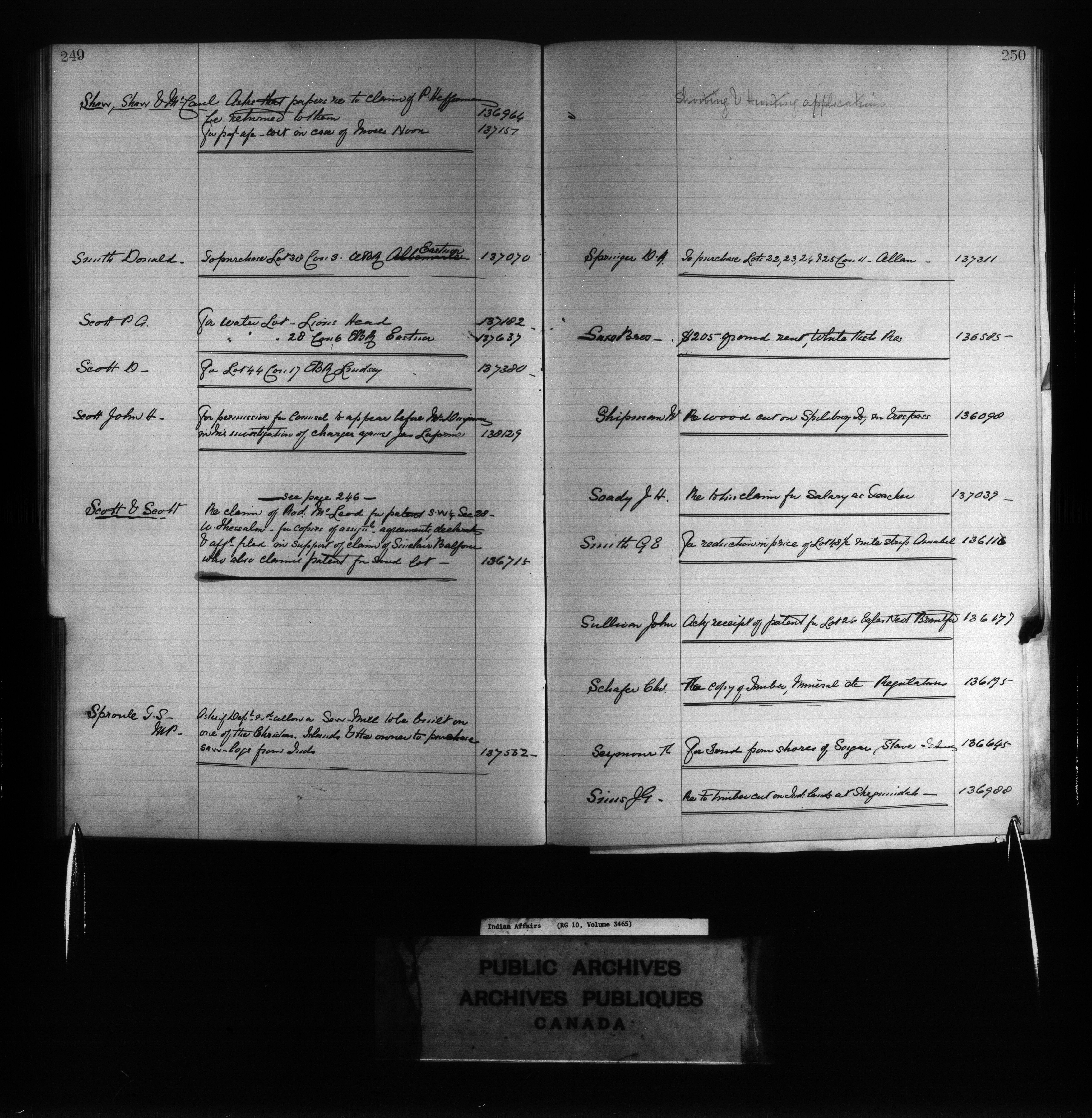 Department of Indian Affairs : Index to Red Series Registers - 11073